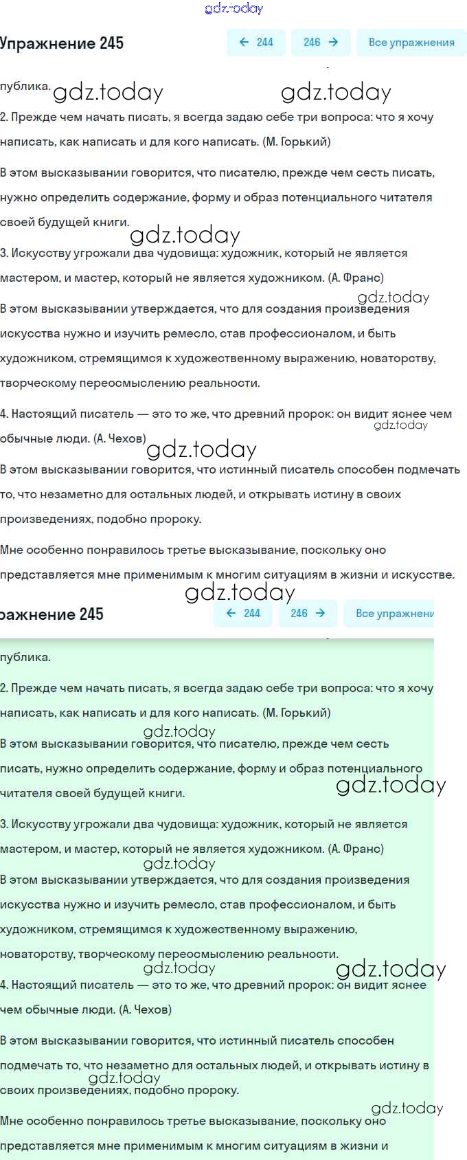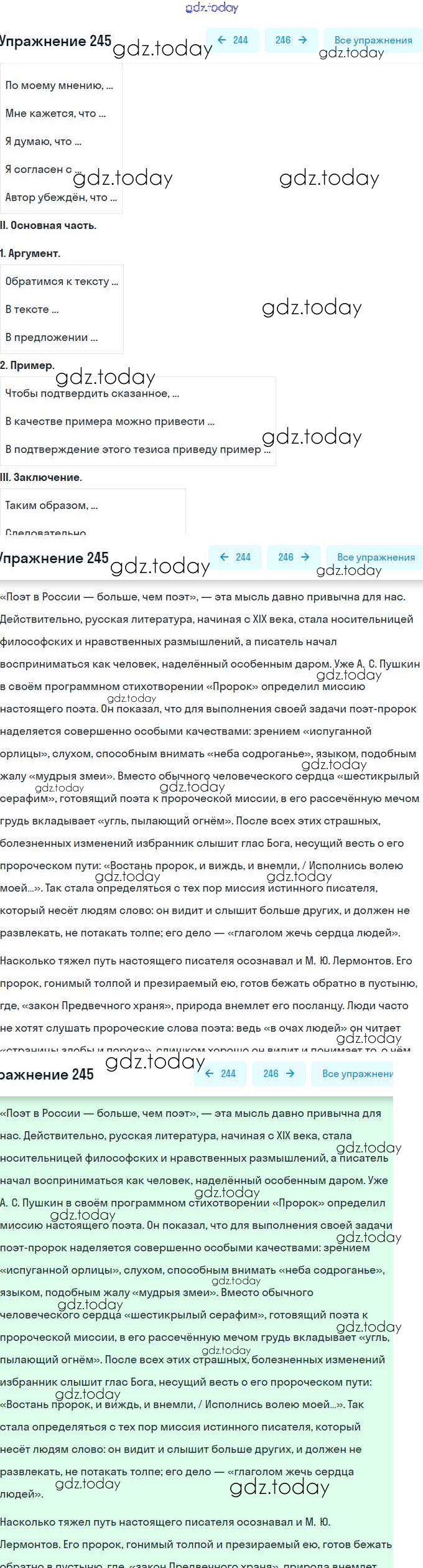 На страницах сайта gdz.today вы найдете учебный и вспомогательный материал, направленный на улучшения знаний школьной программы. ГДЗ - онлайн мир знаний Решение. Упражнения 245 Практике по Русскому языку для 9 класса Пичугов, Еремеева Просвещение, Дрофа 2022, 2012