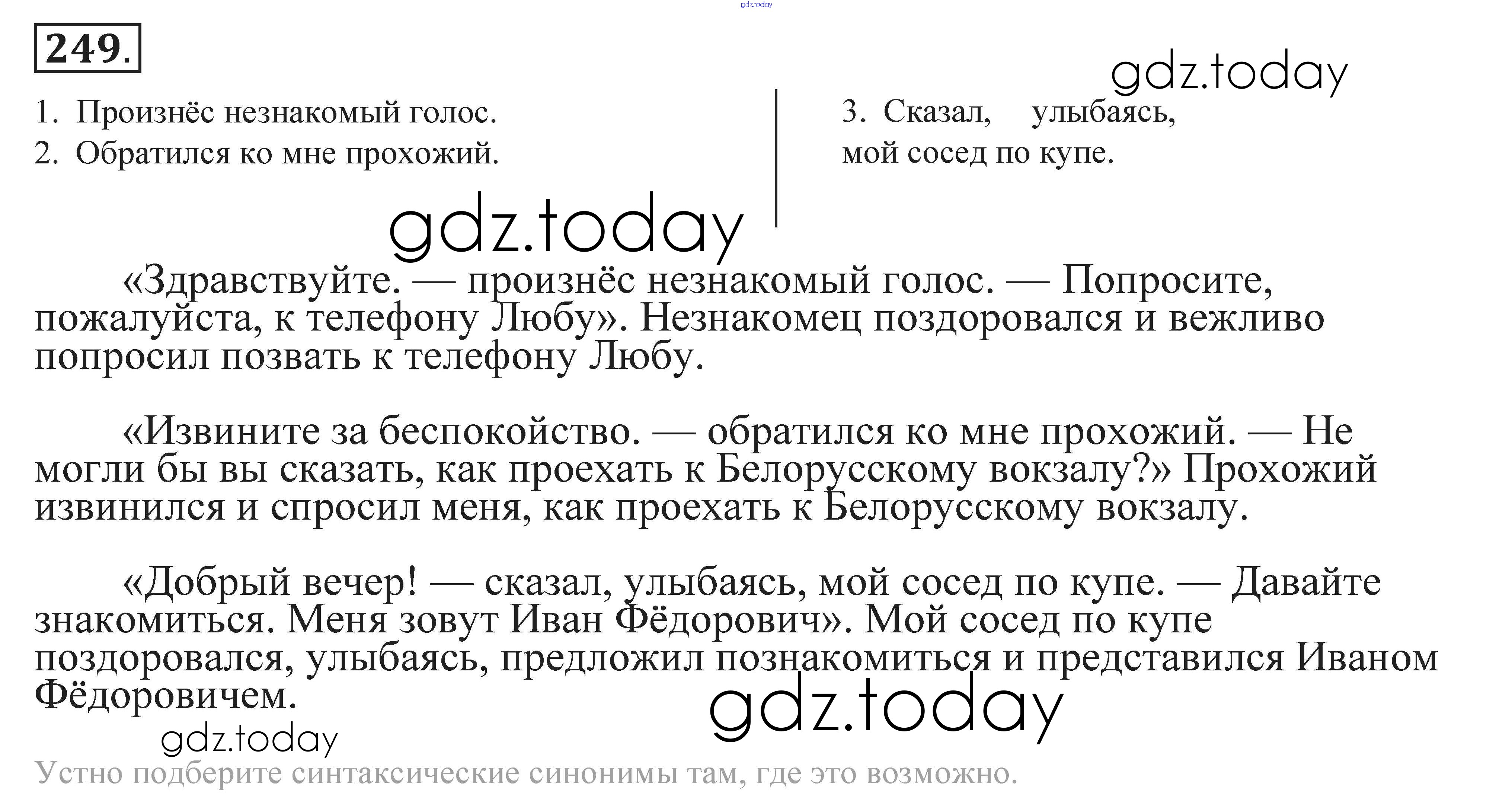На страницах сайта gdz.today вы найдете учебный и вспомогательный материал, направленный на улучшения знаний школьной программы. ГДЗ - онлайн мир знаний Решение. Упражнения 249 Практике по Русскому языку для 9 класса Пичугов, Еремеева Просвещение, Дрофа 2022, 2012