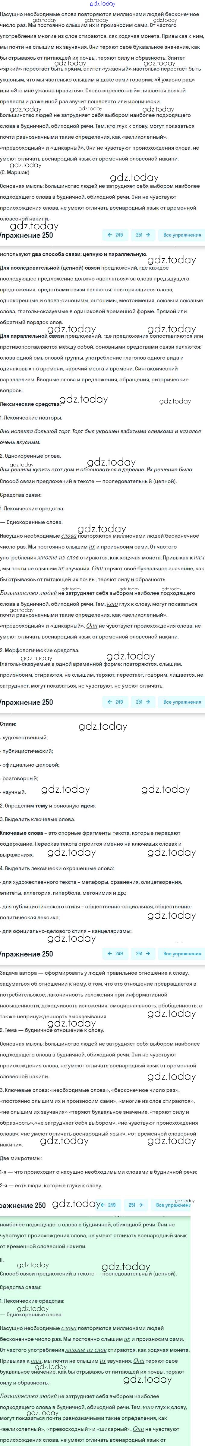 На страницах сайта gdz.today вы найдете учебный и вспомогательный материал, направленный на улучшения знаний школьной программы. ГДЗ - онлайн мир знаний Решение. Упражнения 250 Практике по Русскому языку для 9 класса Пичугов, Еремеева Просвещение, Дрофа 2022, 2012