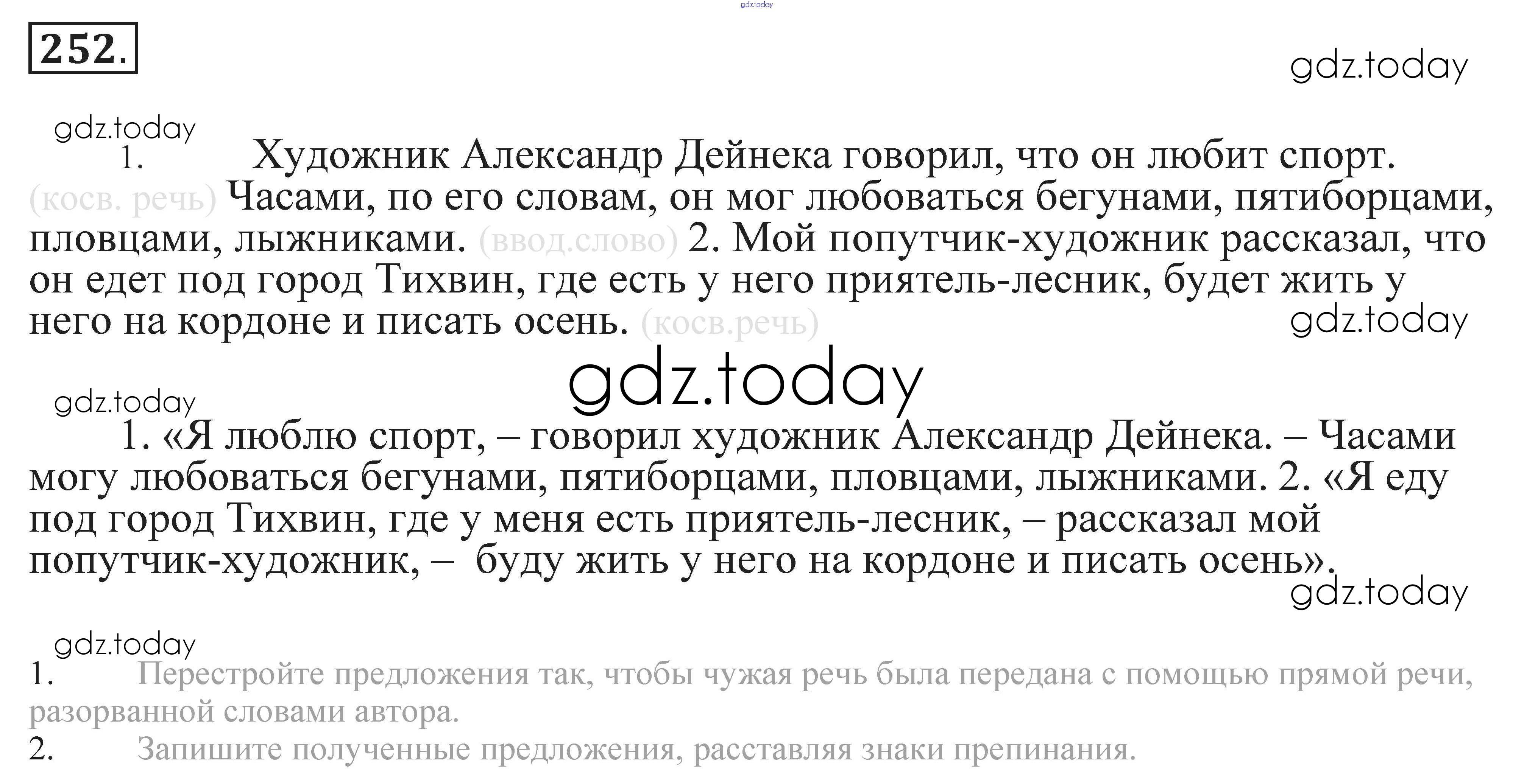 На страницах сайта gdz.today вы найдете учебный и вспомогательный материал, направленный на улучшения знаний школьной программы. ГДЗ - онлайн мир знаний Решение. Упражнения 252 Практике по Русскому языку для 9 класса Пичугов, Еремеева Просвещение, Дрофа 2022, 2012