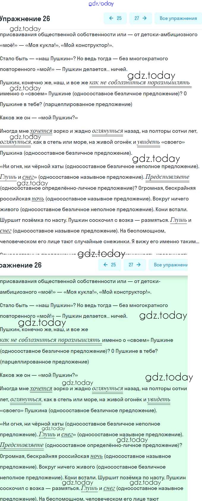 На страницах сайта gdz.today вы найдете учебный и вспомогательный материал, направленный на улучшения знаний школьной программы. ГДЗ - онлайн мир знаний Решение. Упражнения 26 Практике по Русскому языку для 9 класса Пичугов, Еремеева Просвещение, Дрофа 2022, 2012