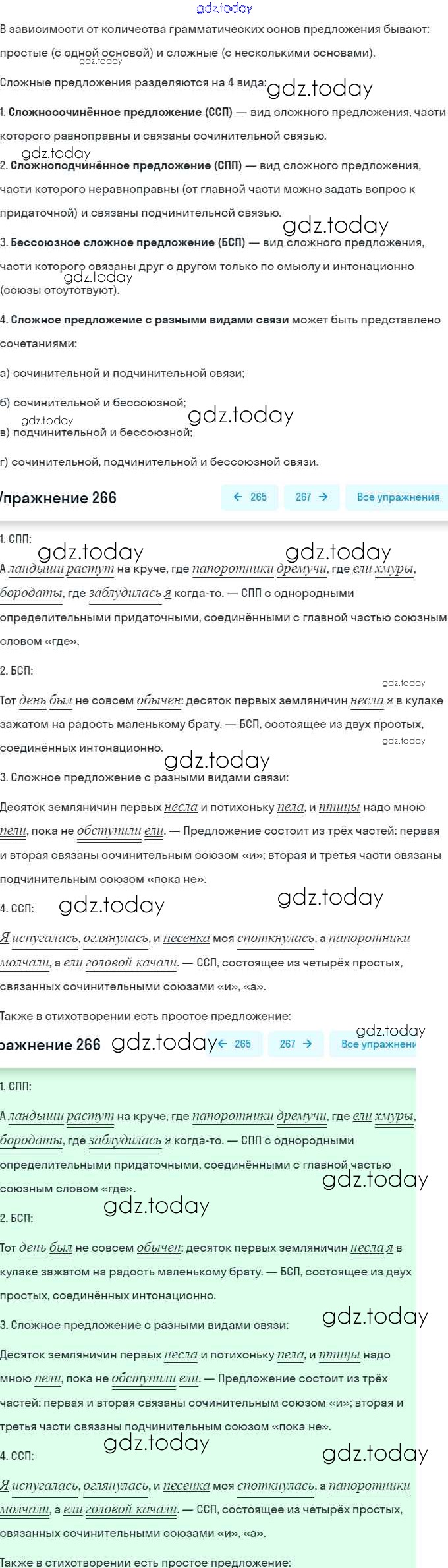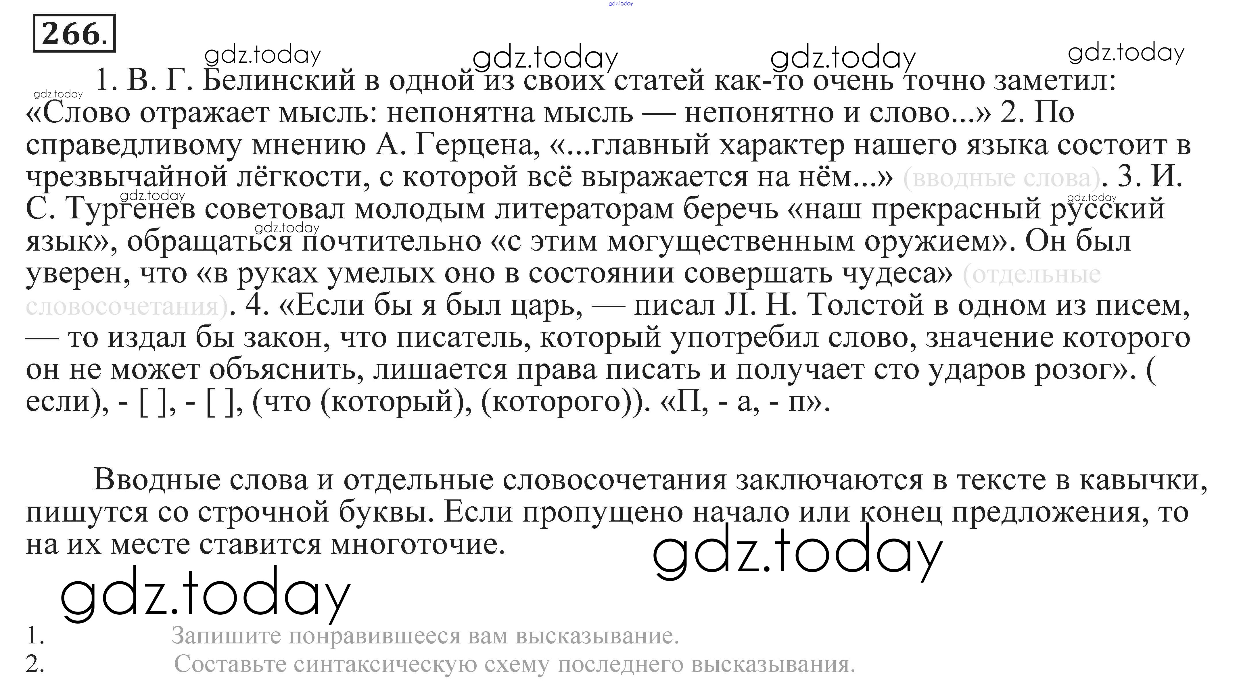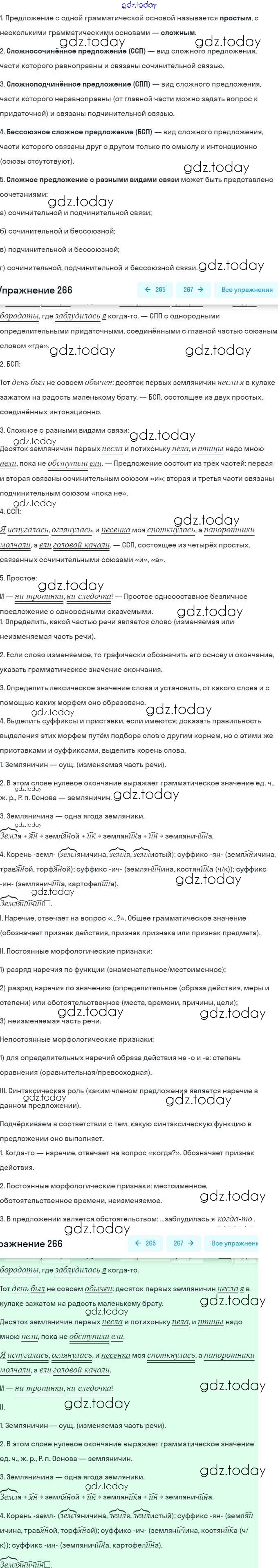 На страницах сайта gdz.today вы найдете учебный и вспомогательный материал, направленный на улучшения знаний школьной программы. ГДЗ - онлайн мир знаний Решение. Упражнения 266 Практике по Русскому языку для 9 класса Пичугов, Еремеева Просвещение, Дрофа 2022, 2012
