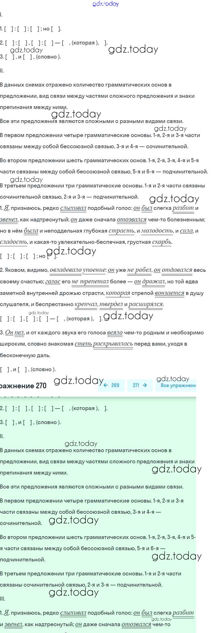 На страницах сайта gdz.today вы найдете учебный и вспомогательный материал, направленный на улучшения знаний школьной программы. ГДЗ - онлайн мир знаний Решение. Упражнения 270 Практике по Русскому языку для 9 класса Пичугов, Еремеева Просвещение, Дрофа 2022, 2012