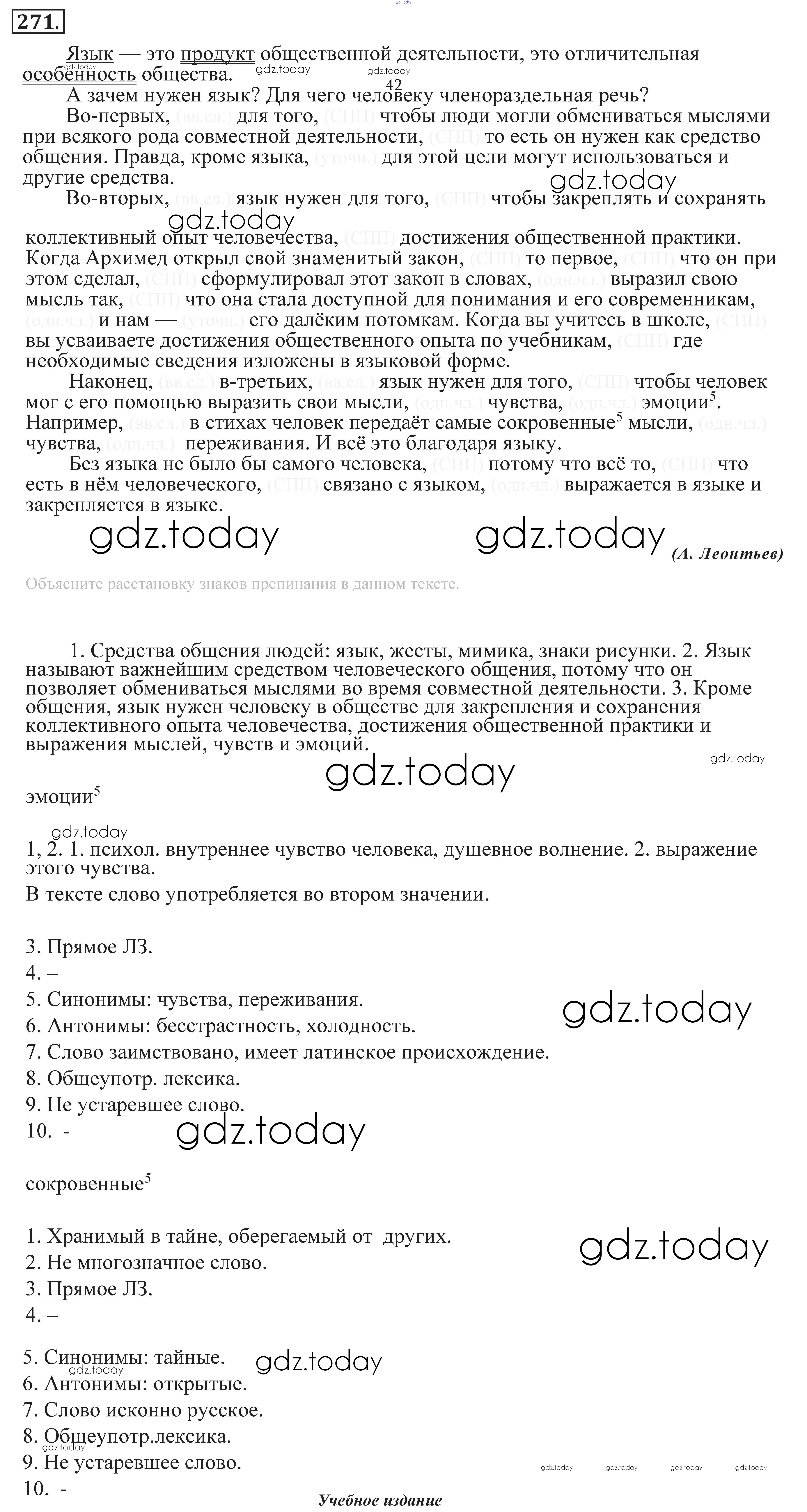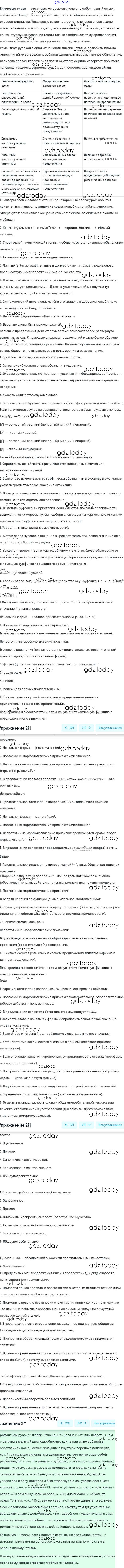 На страницах сайта gdz.today вы найдете учебный и вспомогательный материал, направленный на улучшения знаний школьной программы. ГДЗ - онлайн мир знаний Решение. Упражнения 271 Практике по Русскому языку для 9 класса Пичугов, Еремеева Просвещение, Дрофа 2022, 2012