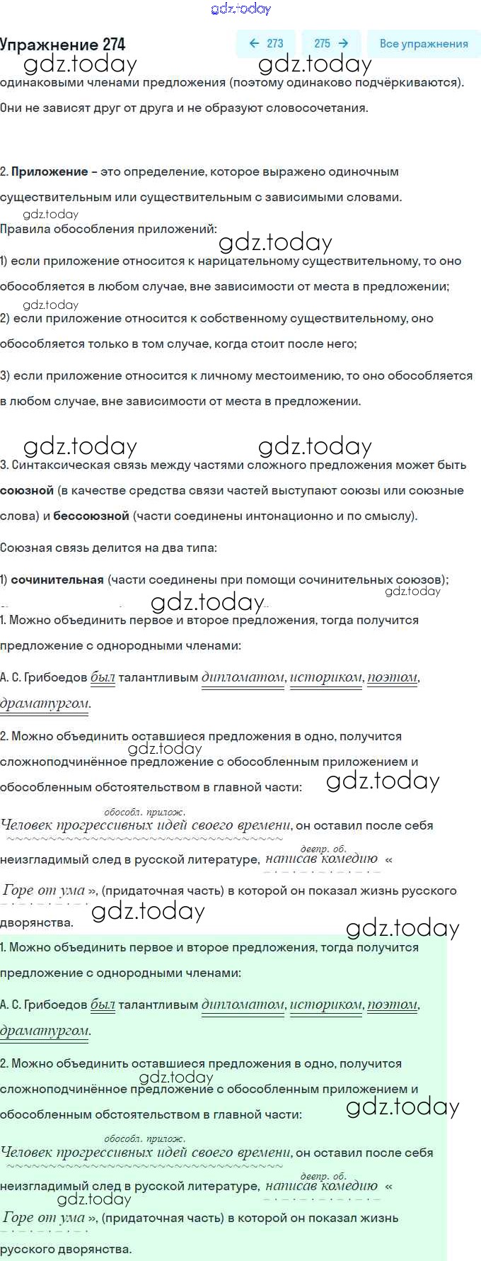 На страницах сайта gdz.today вы найдете учебный и вспомогательный материал, направленный на улучшения знаний школьной программы. ГДЗ - онлайн мир знаний Решение. Упражнения 274 Практике по Русскому языку для 9 класса Пичугов, Еремеева Просвещение, Дрофа 2022, 2012