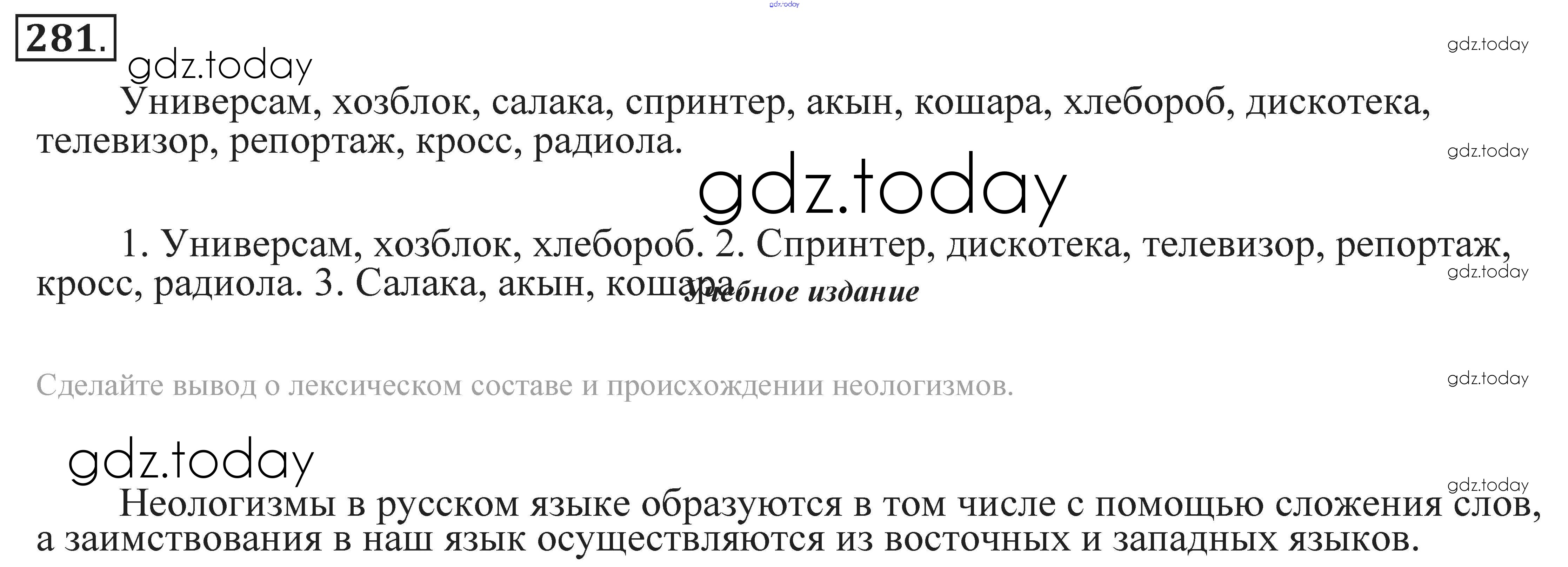 На страницах сайта gdz.today вы найдете учебный и вспомогательный материал, направленный на улучшения знаний школьной программы. ГДЗ - онлайн мир знаний Решение. Упражнения 281 Практике по Русскому языку для 9 класса Пичугов, Еремеева Просвещение, Дрофа 2022, 2012