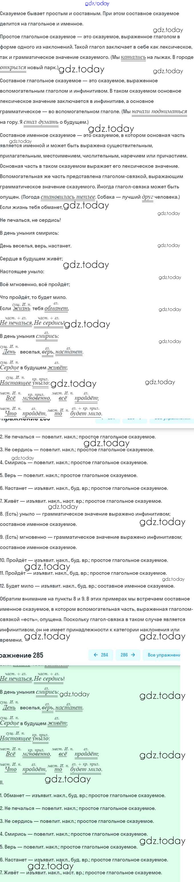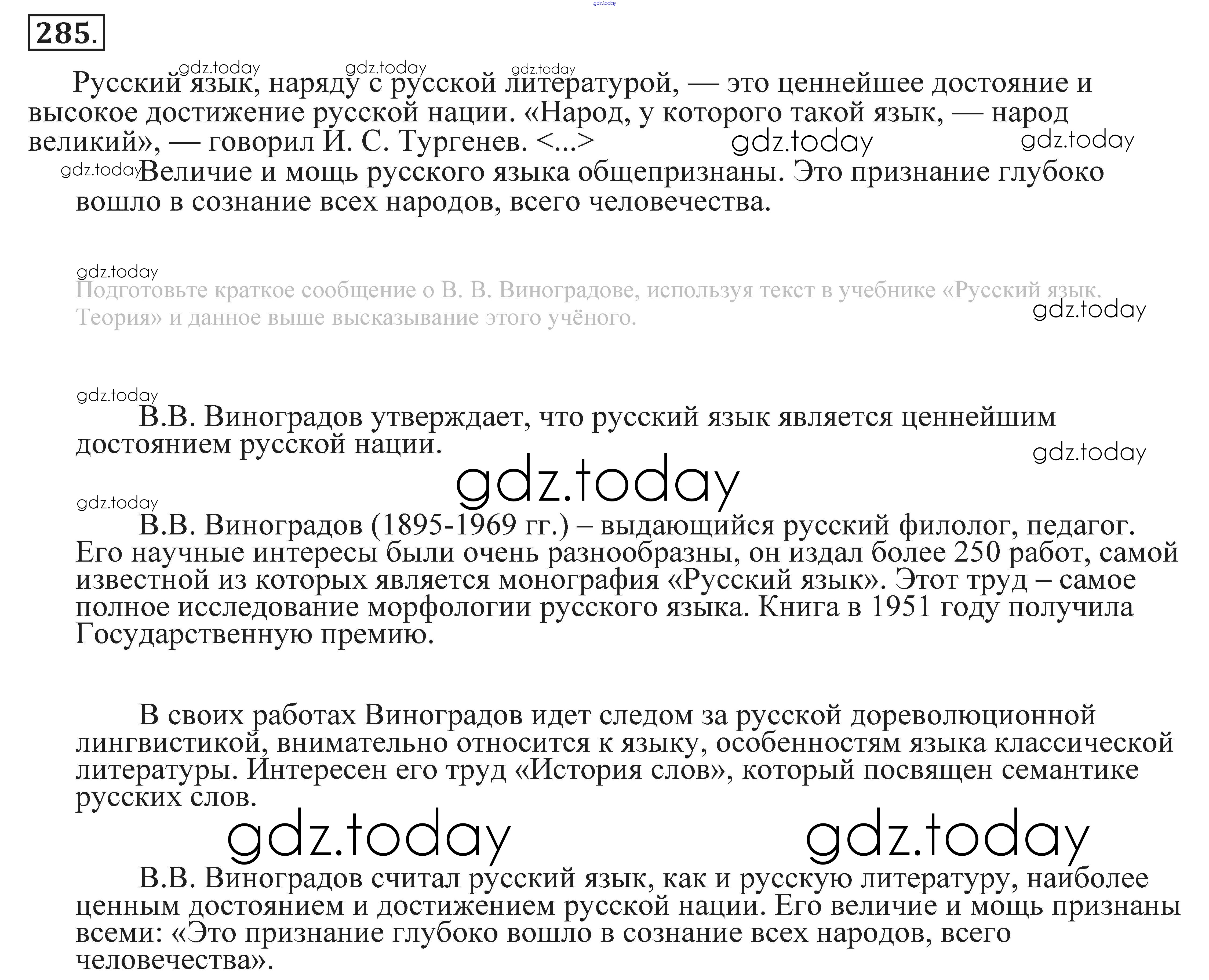 На страницах сайта gdz.today вы найдете учебный и вспомогательный материал, направленный на улучшения знаний школьной программы. ГДЗ - онлайн мир знаний Решение. Упражнения 285 Практике по Русскому языку для 9 класса Пичугов, Еремеева Просвещение, Дрофа 2022, 2012
