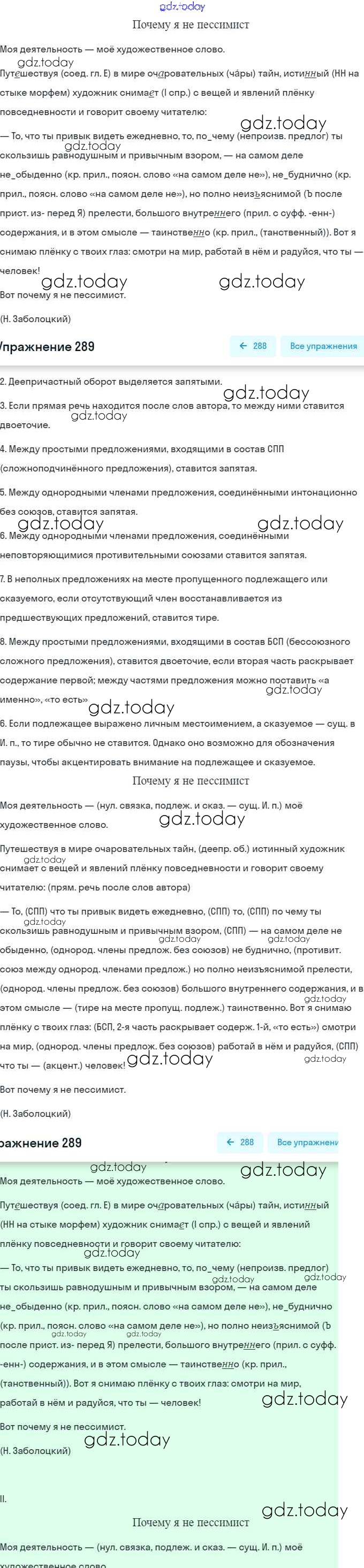 Ответы к Решение. Упражнения 289 Практике по Русскому языку для 9 класса Пичугов, Еремеева Просвещение, Дрофа 2022, 2012