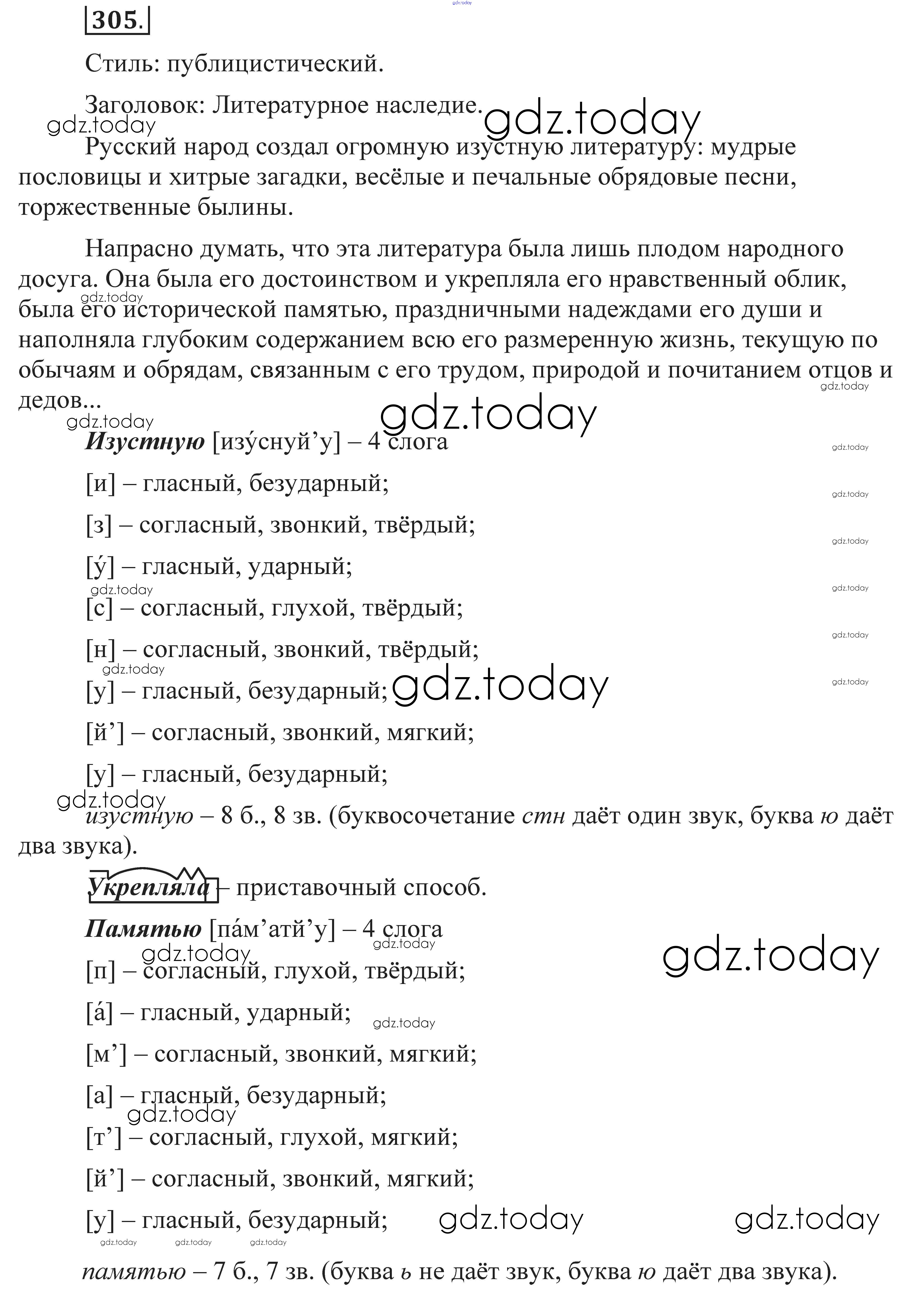 На страницах сайта gdz.today вы найдете учебный и вспомогательный материал, направленный на улучшения знаний школьной программы. ГДЗ - онлайн мир знаний Решение. Упражнения 305 Практике по Русскому языку для 9 класса Пичугов, Еремеева Просвещение, Дрофа 2022, 2012