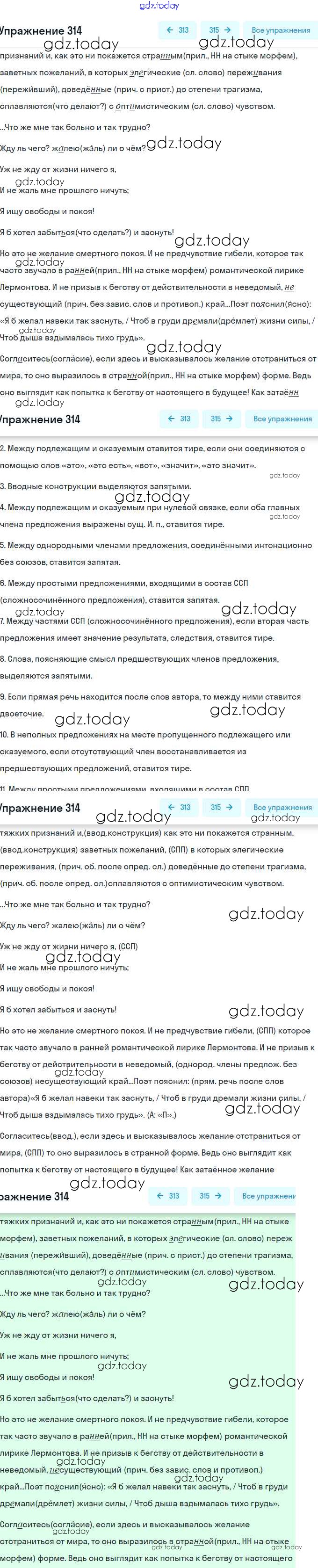 На страницах сайта gdz.today вы найдете учебный и вспомогательный материал, направленный на улучшения знаний школьной программы. ГДЗ - онлайн мир знаний Решение. Упражнения 314 Практике по Русскому языку для 9 класса Пичугов, Еремеева Просвещение, Дрофа 2022, 2012