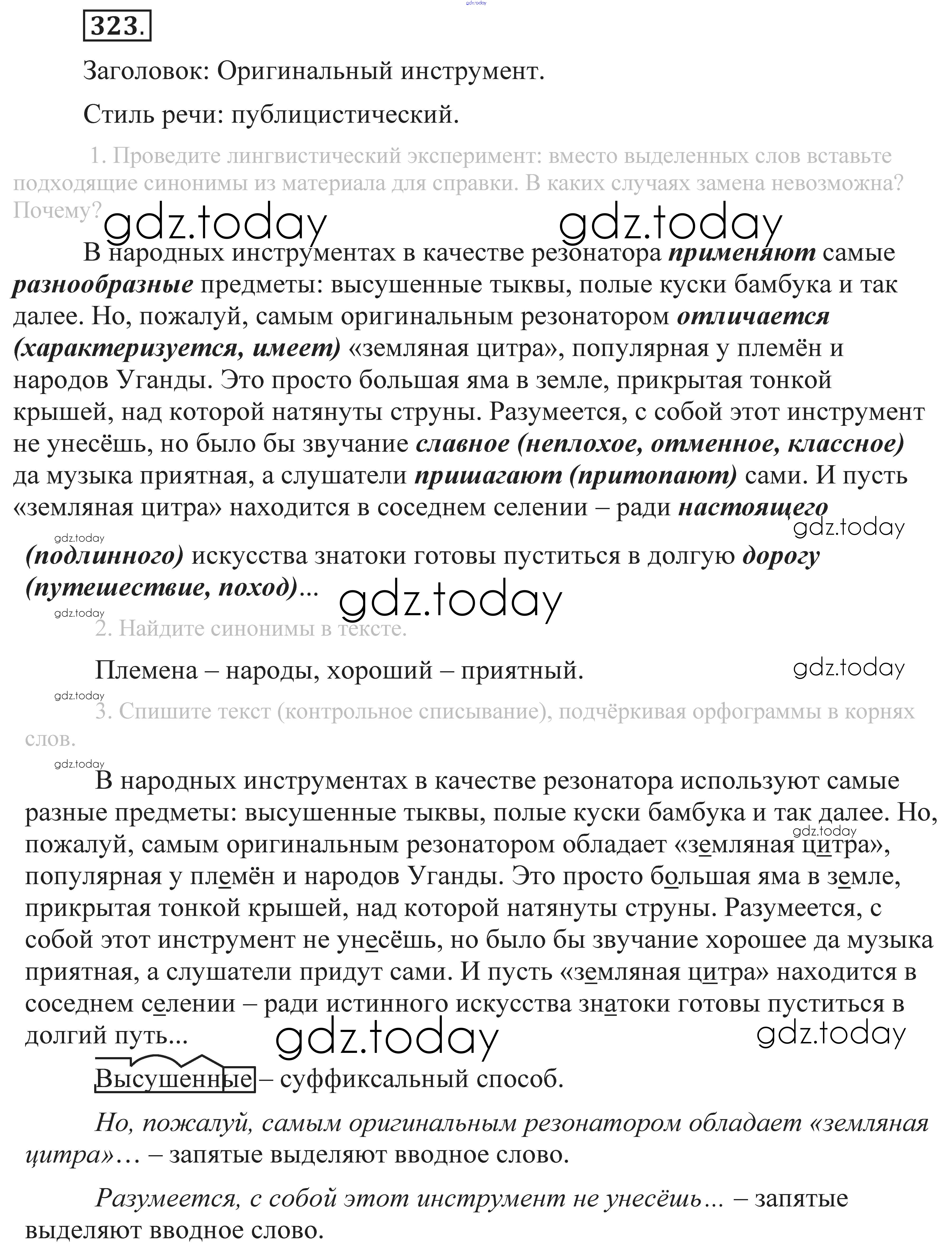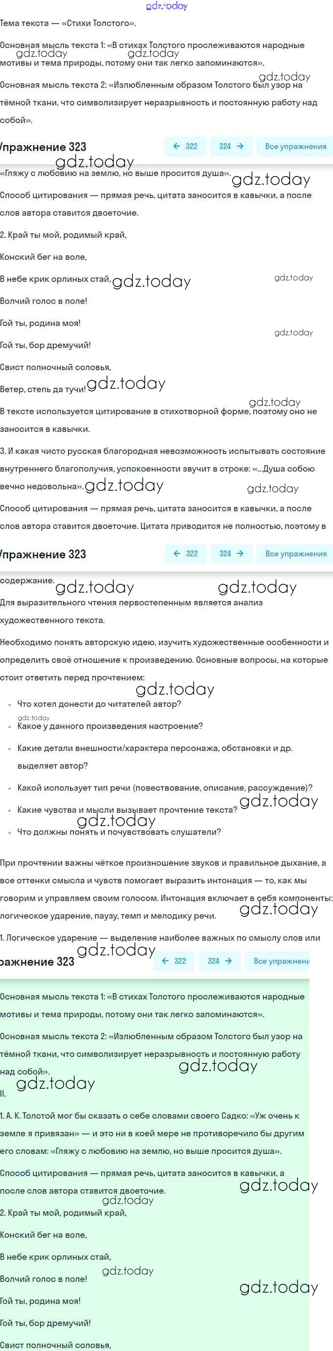 На страницах сайта gdz.today вы найдете учебный и вспомогательный материал, направленный на улучшения знаний школьной программы. ГДЗ - онлайн мир знаний Решение. Упражнения 323 Практике по Русскому языку для 9 класса Пичугов, Еремеева Просвещение, Дрофа 2022, 2012