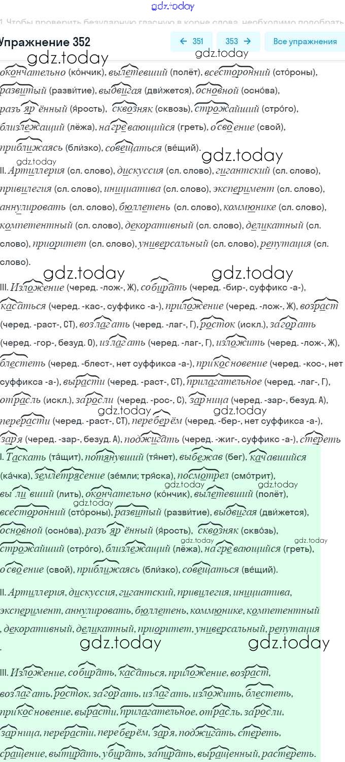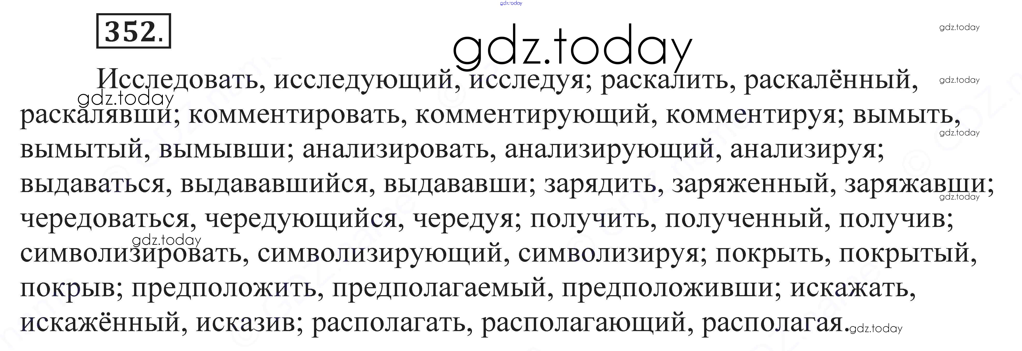 На страницах сайта gdz.today вы найдете учебный и вспомогательный материал, направленный на улучшения знаний школьной программы. ГДЗ - онлайн мир знаний Решение. Упражнения 352 Практике по Русскому языку для 9 класса Пичугов, Еремеева Просвещение, Дрофа 2022, 2012
