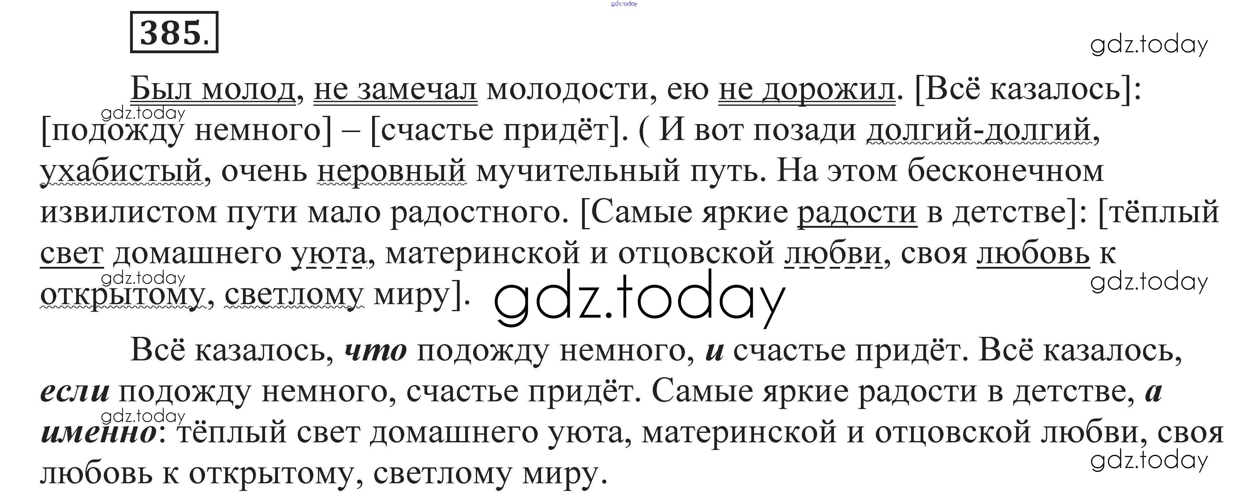 На страницах сайта gdz.today вы найдете учебный и вспомогательный материал, направленный на улучшения знаний школьной программы. ГДЗ - онлайн мир знаний Решение. Упражнения 385 Практике по Русскому языку для 9 класса Пичугов, Еремеева Просвещение, Дрофа 2022, 2012