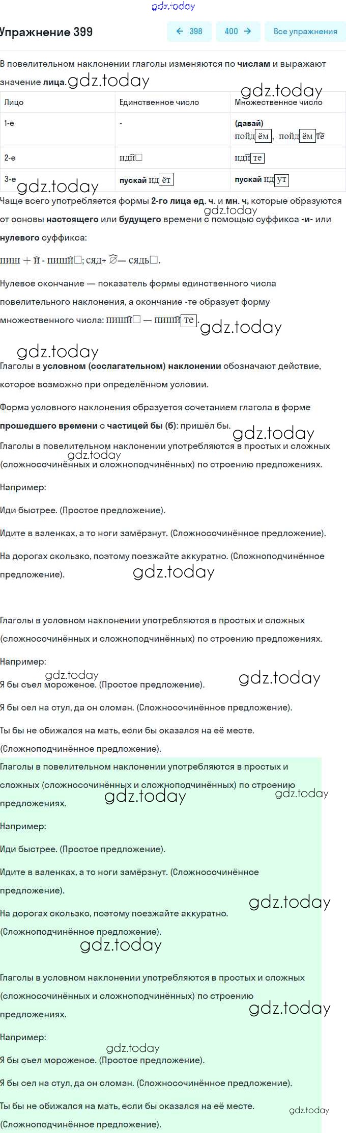 На страницах сайта gdz.today вы найдете учебный и вспомогательный материал, направленный на улучшения знаний школьной программы. ГДЗ - онлайн мир знаний Решение. Упражнения 399 Практике по Русскому языку для 9 класса Пичугов, Еремеева Просвещение, Дрофа 2022, 2012
