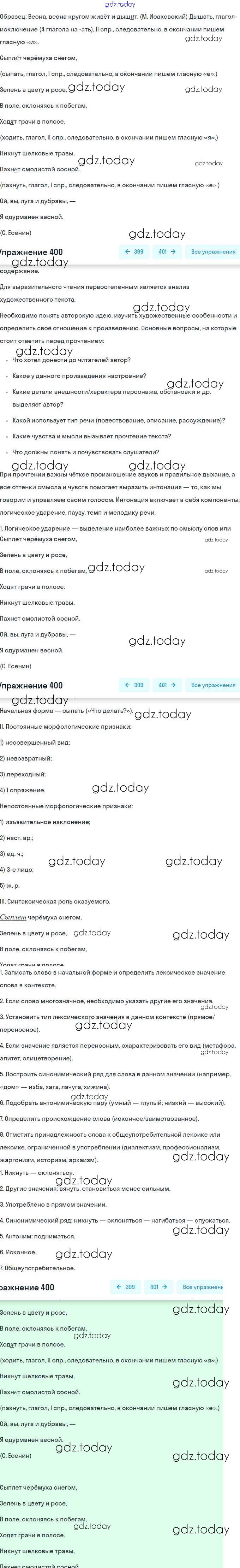 На страницах сайта gdz.today вы найдете учебный и вспомогательный материал, направленный на улучшения знаний школьной программы. ГДЗ - онлайн мир знаний Решение. Упражнения 400 Практике по Русскому языку для 9 класса Пичугов, Еремеева Просвещение, Дрофа 2022, 2012