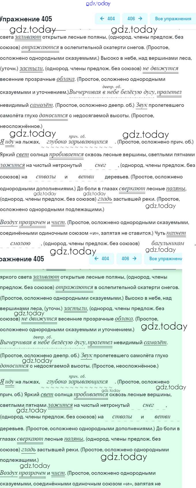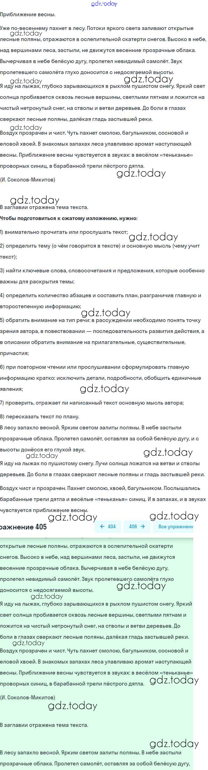 На страницах сайта gdz.today вы найдете учебный и вспомогательный материал, направленный на улучшения знаний школьной программы. ГДЗ - онлайн мир знаний Решение. Упражнения 405 Практике по Русскому языку для 9 класса Пичугов, Еремеева Просвещение, Дрофа 2022, 2012