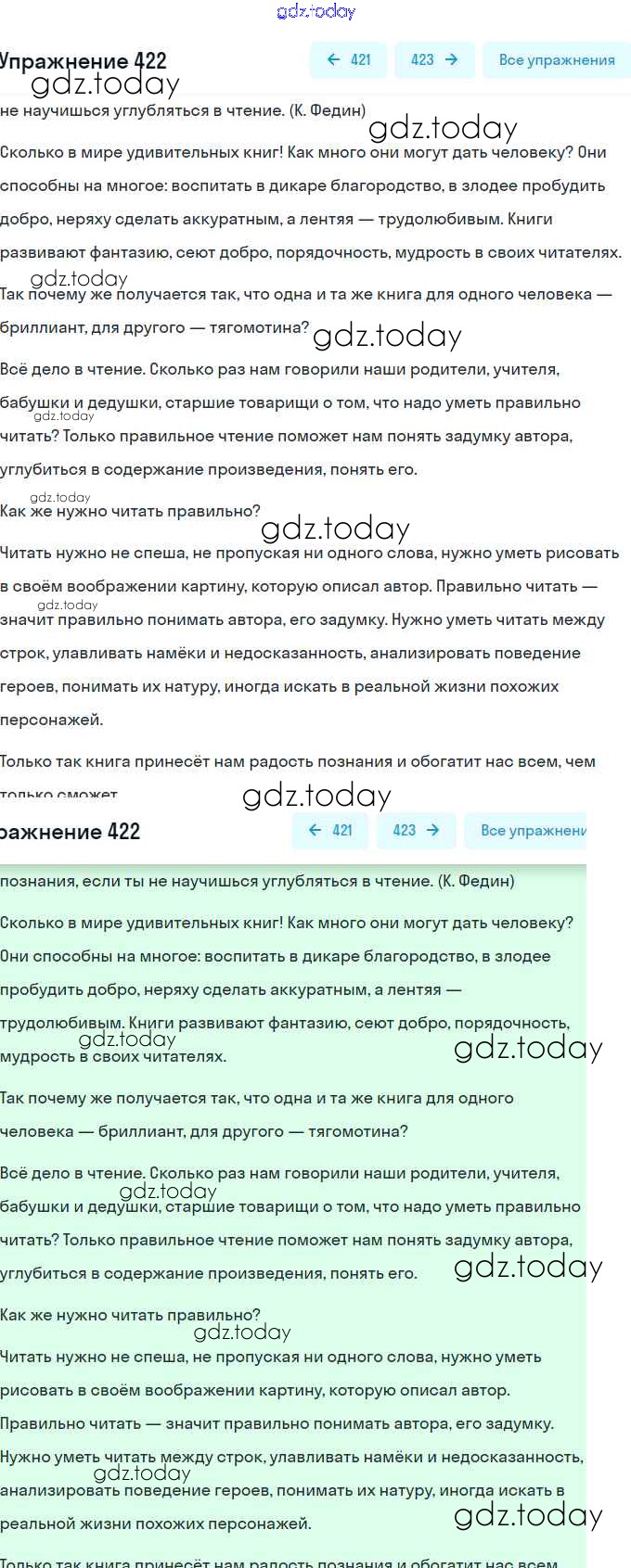На страницах сайта gdz.today вы найдете учебный и вспомогательный материал, направленный на улучшения знаний школьной программы. ГДЗ - онлайн мир знаний Решение. Упражнения 422 Практике по Русскому языку для 9 класса Пичугов, Еремеева Просвещение, Дрофа 2022, 2012