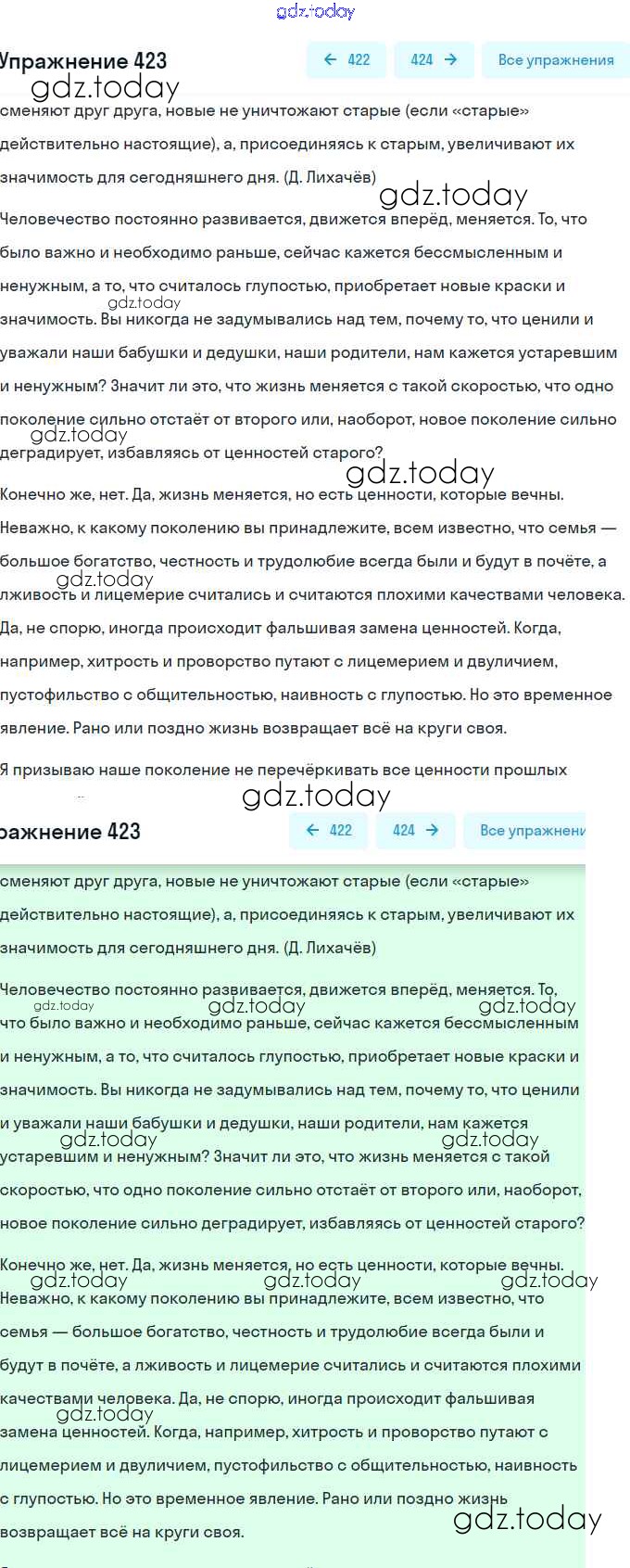 На страницах сайта gdz.today вы найдете учебный и вспомогательный материал, направленный на улучшения знаний школьной программы. ГДЗ - онлайн мир знаний Решение. Упражнения 423 Практике по Русскому языку для 9 класса Пичугов, Еремеева Просвещение, Дрофа 2022, 2012