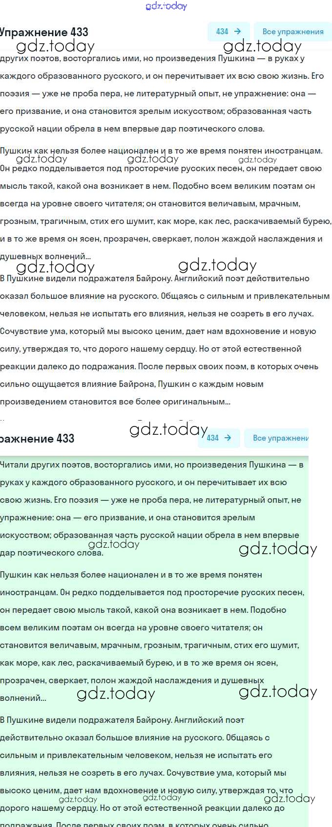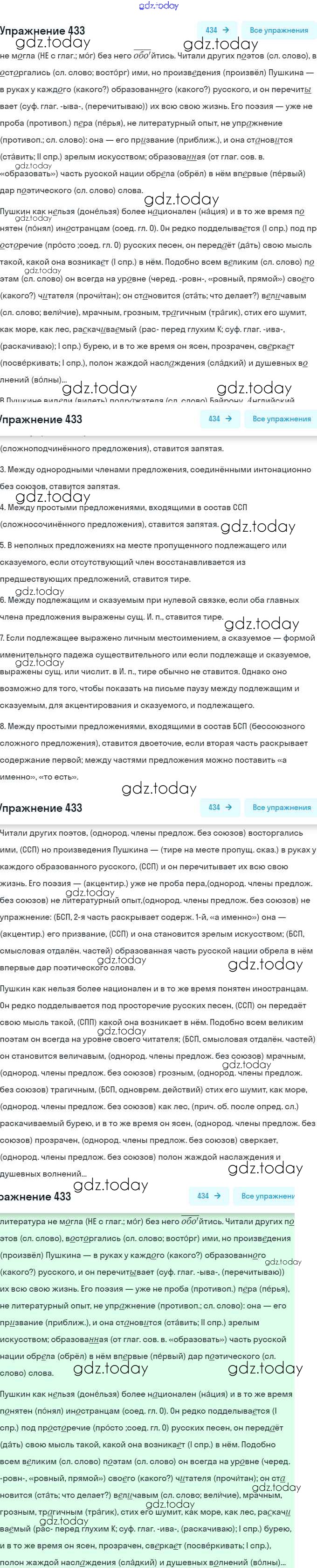 На страницах сайта gdz.today вы найдете учебный и вспомогательный материал, направленный на улучшения знаний школьной программы. ГДЗ - онлайн мир знаний Решение. Упражнения 433 Практике по Русскому языку для 9 класса Пичугов, Еремеева Просвещение, Дрофа 2022, 2012