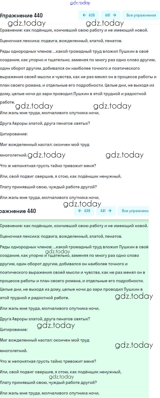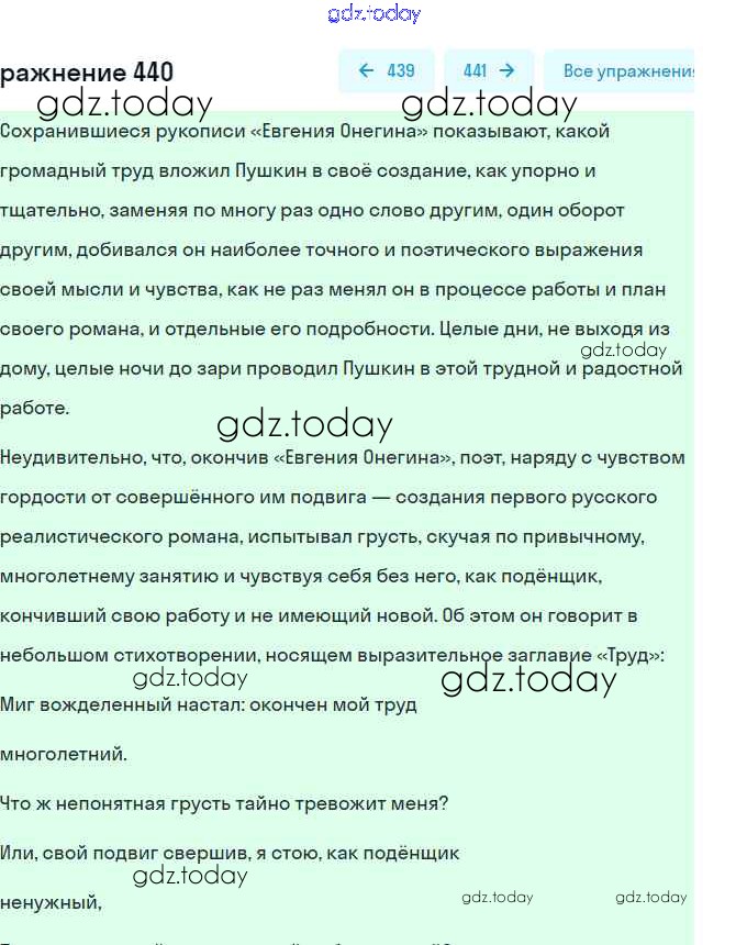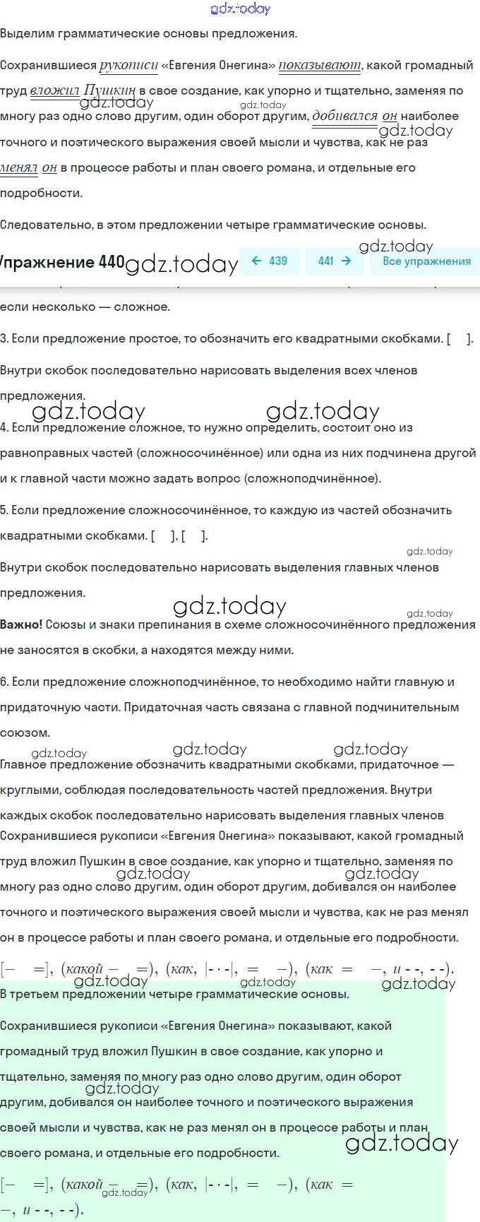 На страницах сайта gdz.today вы найдете учебный и вспомогательный материал, направленный на улучшения знаний школьной программы. ГДЗ - онлайн мир знаний Решение. Упражнения 440 Практике по Русскому языку для 9 класса Пичугов, Еремеева Просвещение, Дрофа 2022, 2012