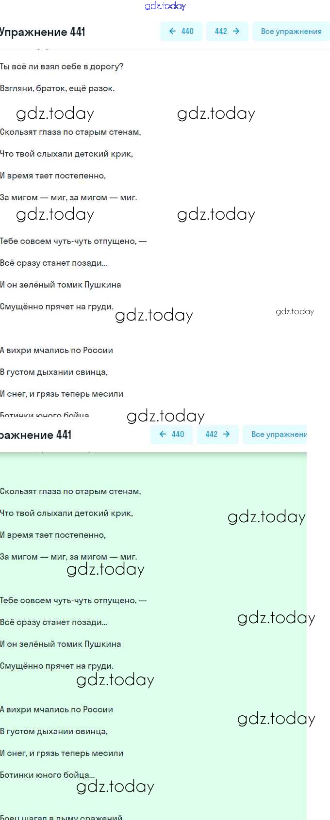 На страницах сайта gdz.today вы найдете учебный и вспомогательный материал, направленный на улучшения знаний школьной программы. ГДЗ - онлайн мир знаний Решение. Упражнения 441 Практике по Русскому языку для 9 класса Пичугов, Еремеева Просвещение, Дрофа 2022, 2012