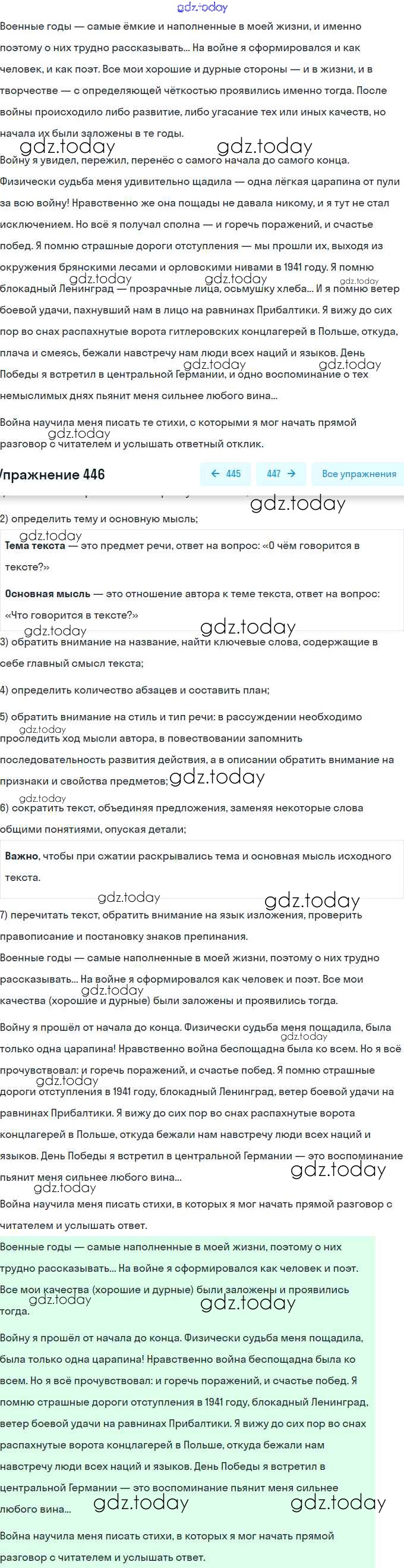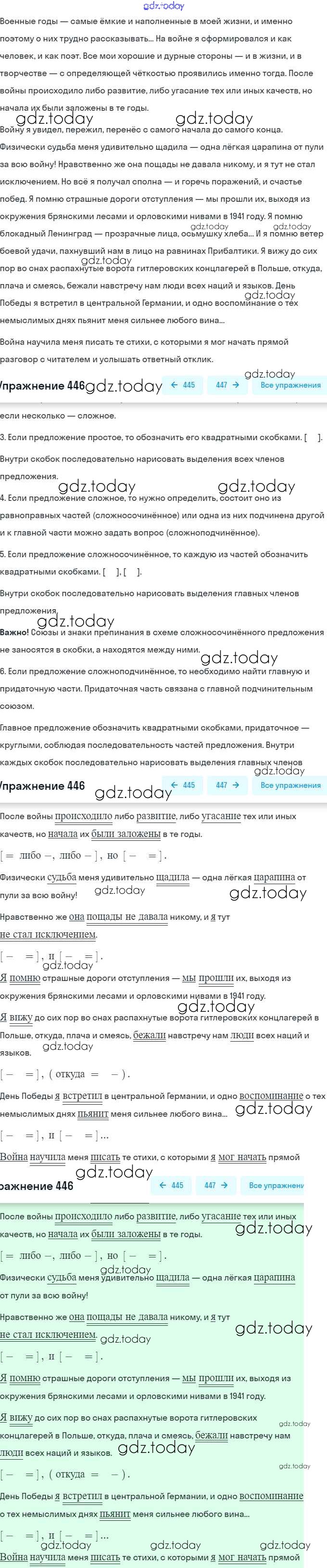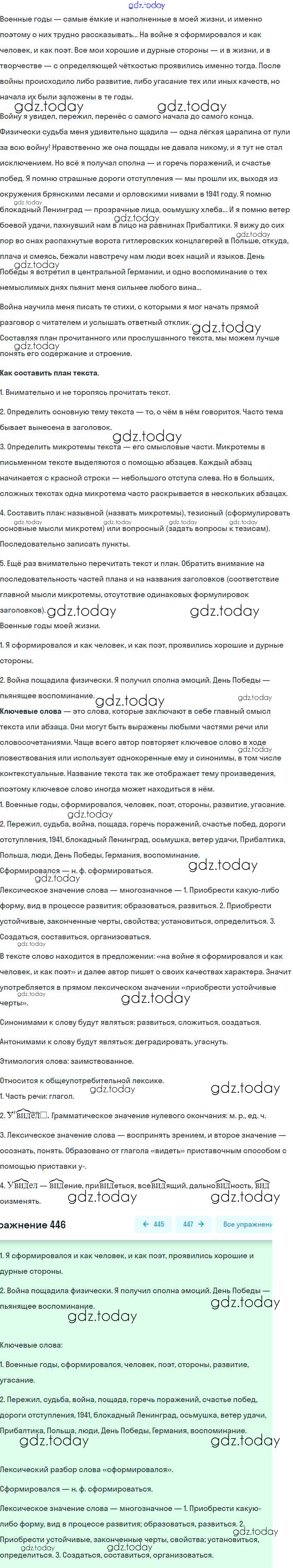 На страницах сайта gdz.today вы найдете учебный и вспомогательный материал, направленный на улучшения знаний школьной программы. ГДЗ - онлайн мир знаний Решение. Упражнения 446 Практике по Русскому языку для 9 класса Пичугов, Еремеева Просвещение, Дрофа 2022, 2012