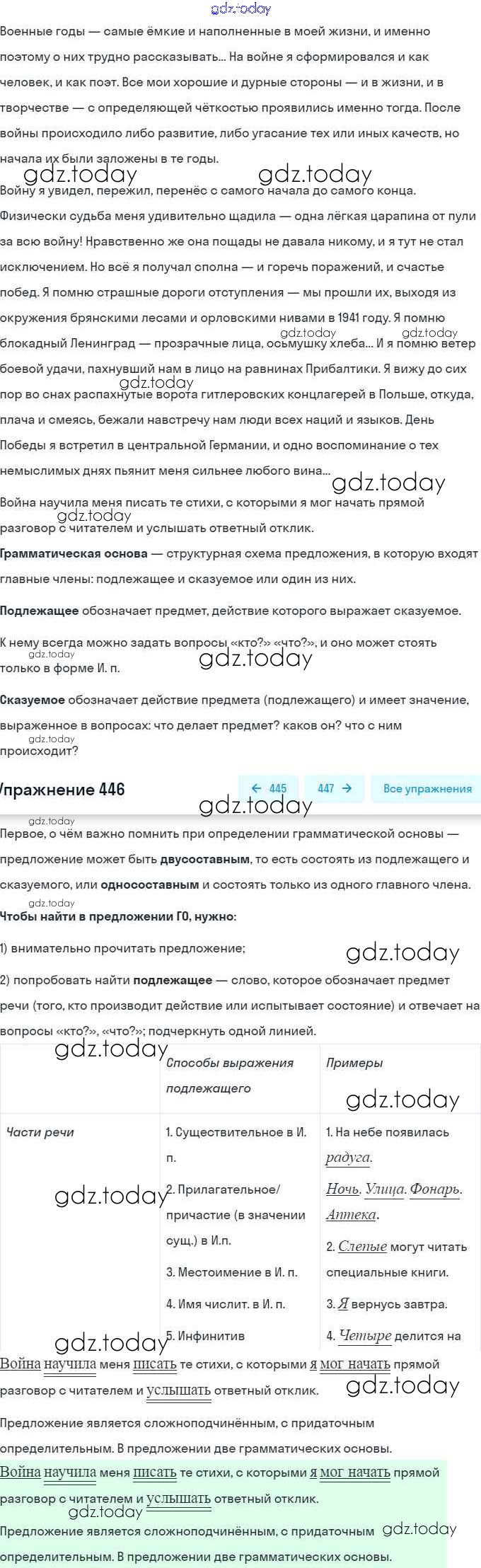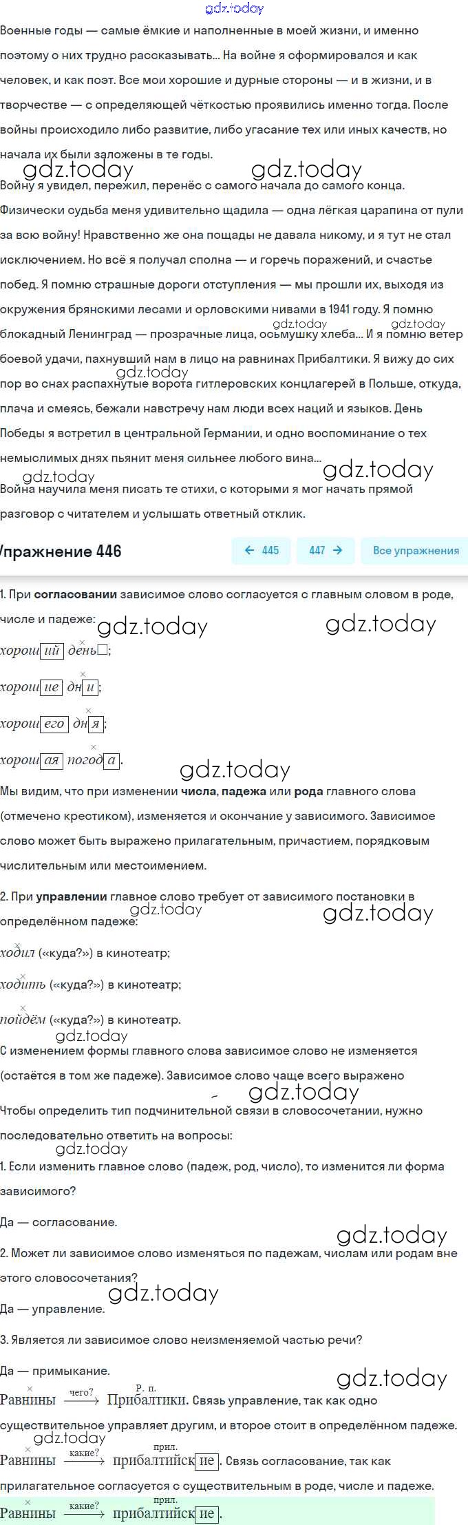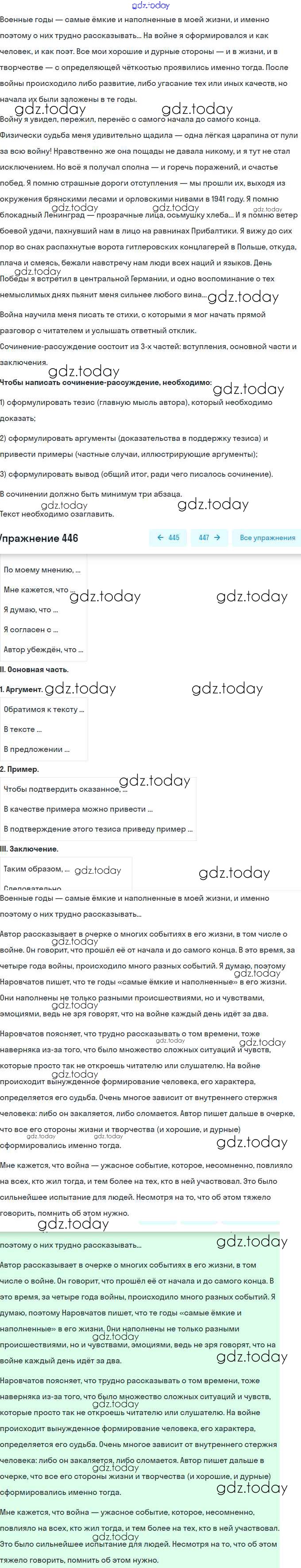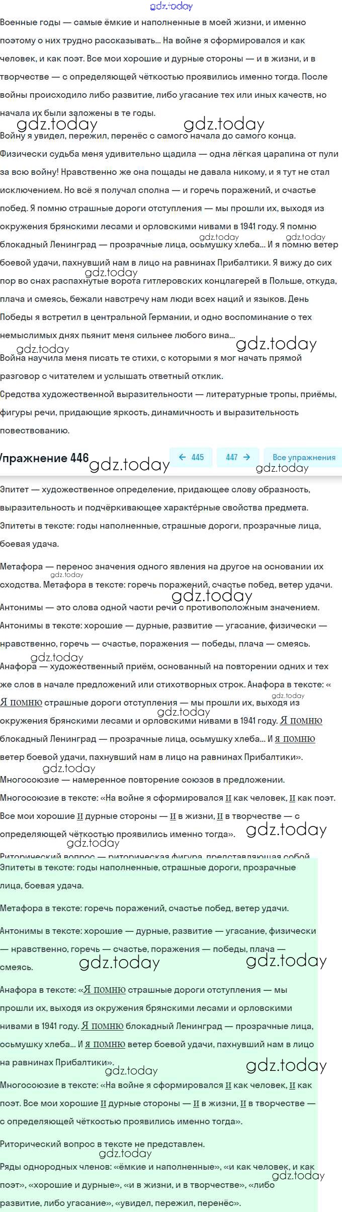 На страницах сайта gdz.today вы найдете учебный и вспомогательный материал, направленный на улучшения знаний школьной программы. ГДЗ - онлайн мир знаний Решение. Упражнения 446 Практике по Русскому языку для 9 класса Пичугов, Еремеева Просвещение, Дрофа 2022, 2012