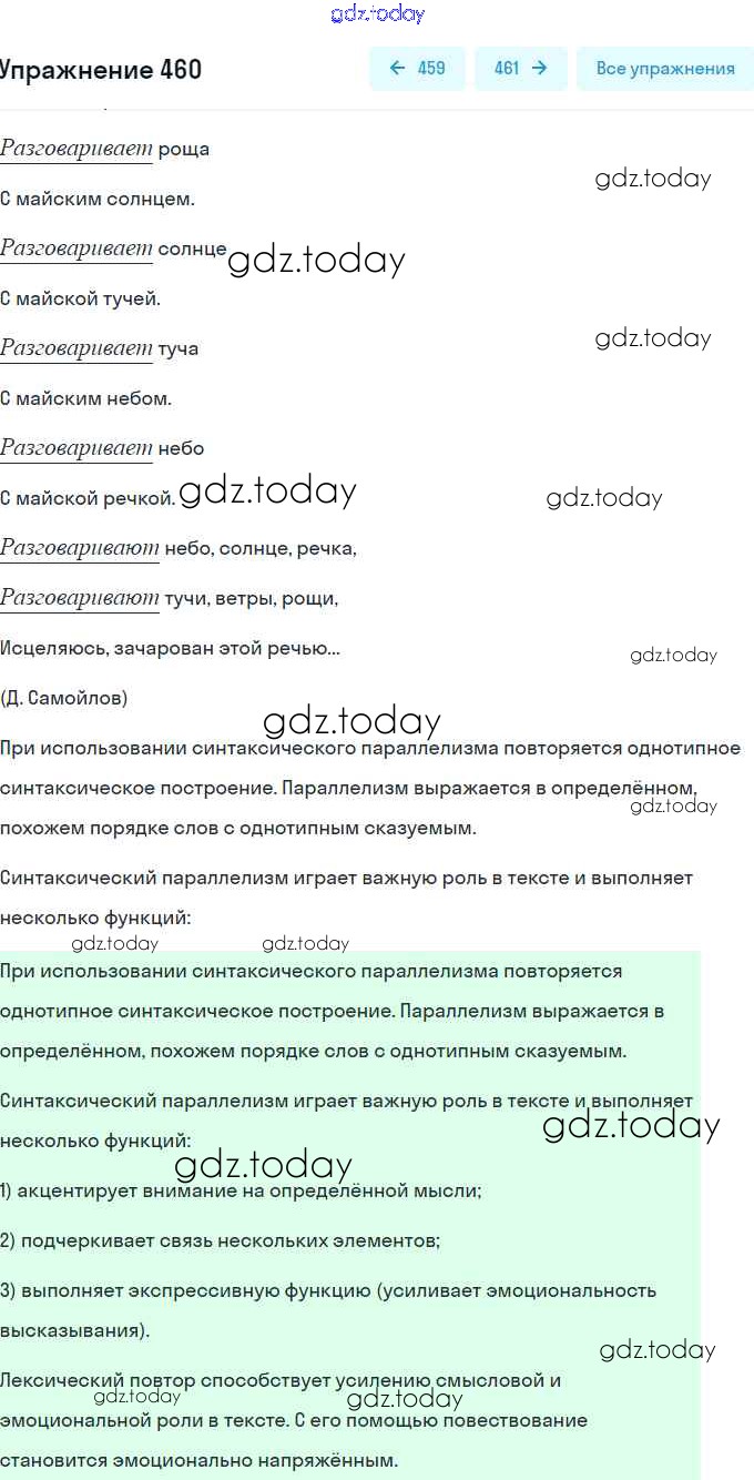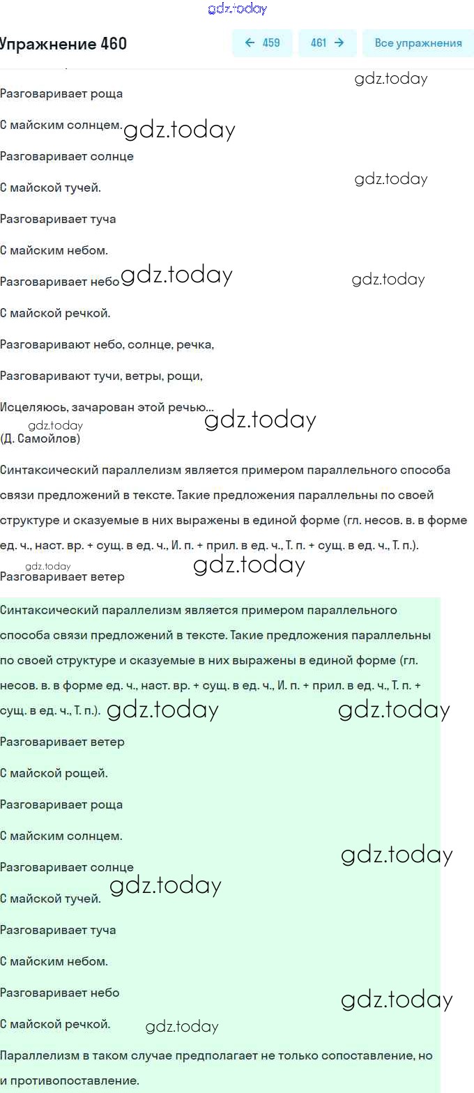 На страницах сайта gdz.today вы найдете учебный и вспомогательный материал, направленный на улучшения знаний школьной программы. ГДЗ - онлайн мир знаний Решение. Упражнения 460 Практике по Русскому языку для 9 класса Пичугов, Еремеева Просвещение, Дрофа 2022, 2012