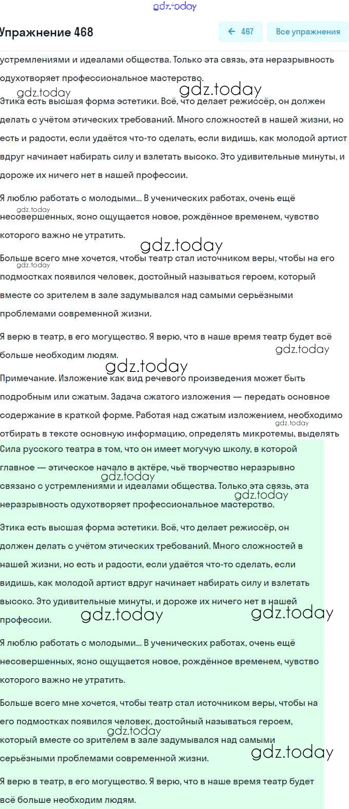 На страницах сайта gdz.today вы найдете учебный и вспомогательный материал, направленный на улучшения знаний школьной программы. ГДЗ - онлайн мир знаний Решение. Упражнения 468 Практике по Русскому языку для 9 класса Пичугов, Еремеева Просвещение, Дрофа 2022, 2012