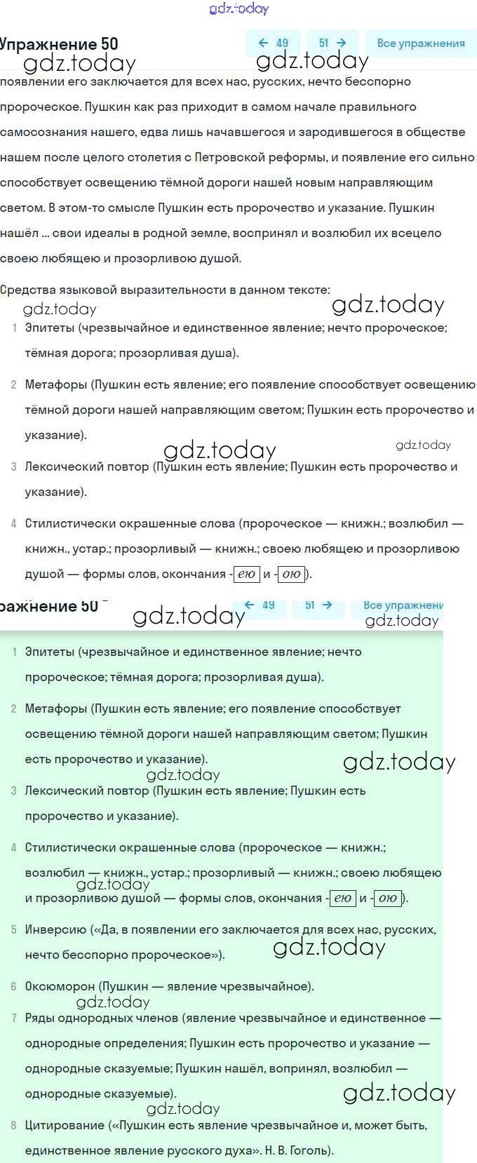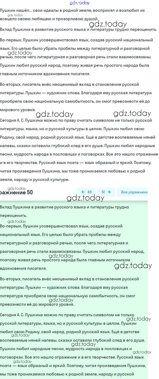 На страницах сайта gdz.today вы найдете учебный и вспомогательный материал, направленный на улучшения знаний школьной программы. ГДЗ - онлайн мир знаний Решение. Упражнения 50 Практике по Русскому языку для 9 класса Пичугов, Еремеева Просвещение, Дрофа 2022, 2012