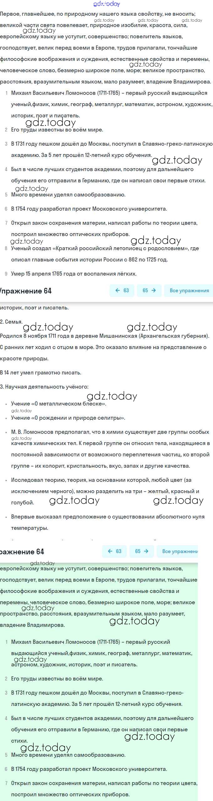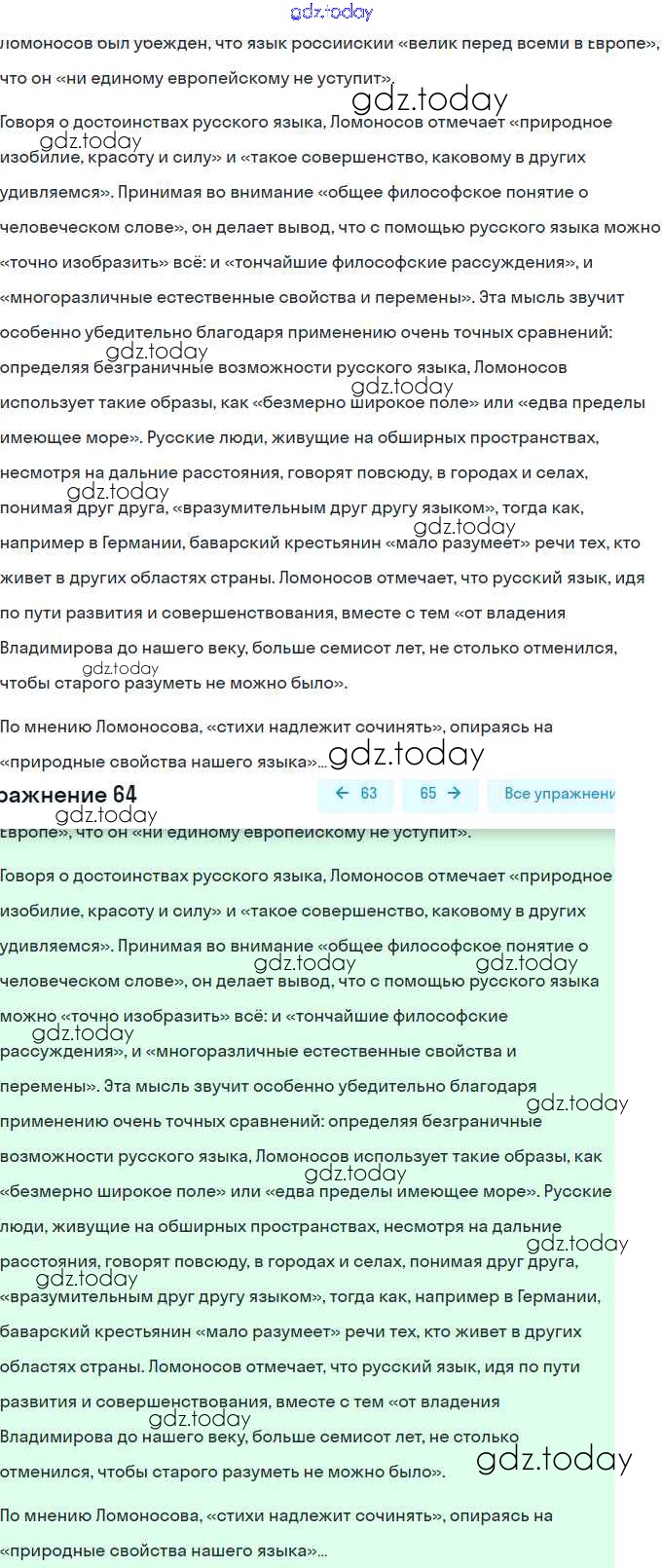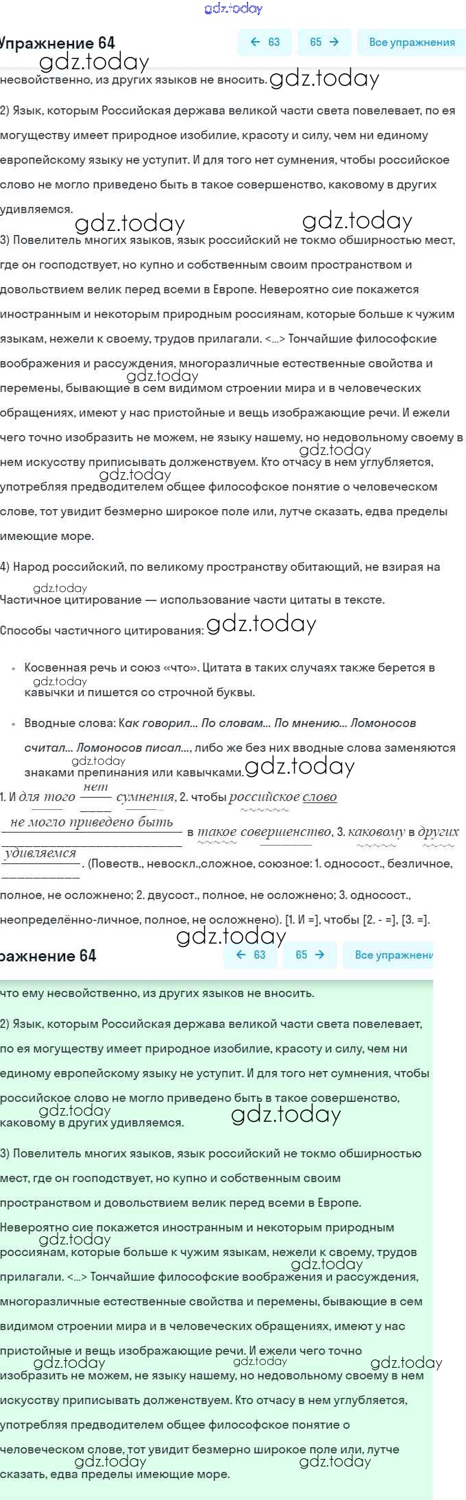 На страницах сайта gdz.today вы найдете учебный и вспомогательный материал, направленный на улучшения знаний школьной программы. ГДЗ - онлайн мир знаний Решение. Упражнения 64 Практике по Русскому языку для 9 класса Пичугов, Еремеева Просвещение, Дрофа 2022, 2012