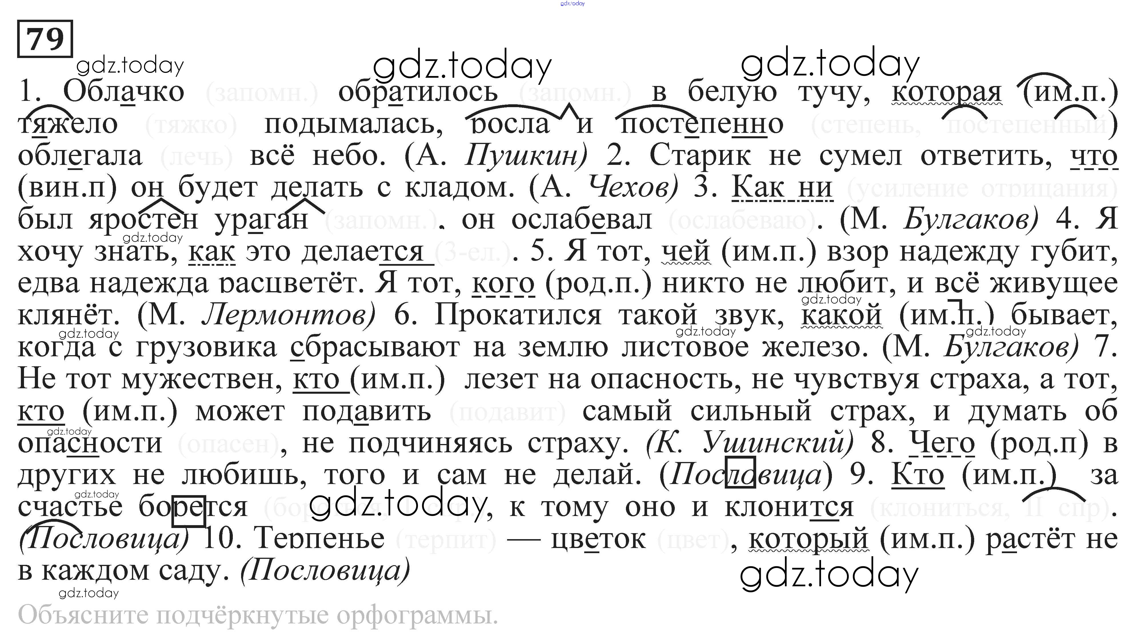 На страницах сайта gdz.today вы найдете учебный и вспомогательный материал, направленный на улучшения знаний школьной программы. ГДЗ - онлайн мир знаний Решение. Упражнения 79 Практике по Русскому языку для 9 класса Пичугов, Еремеева Просвещение, Дрофа 2022, 2012