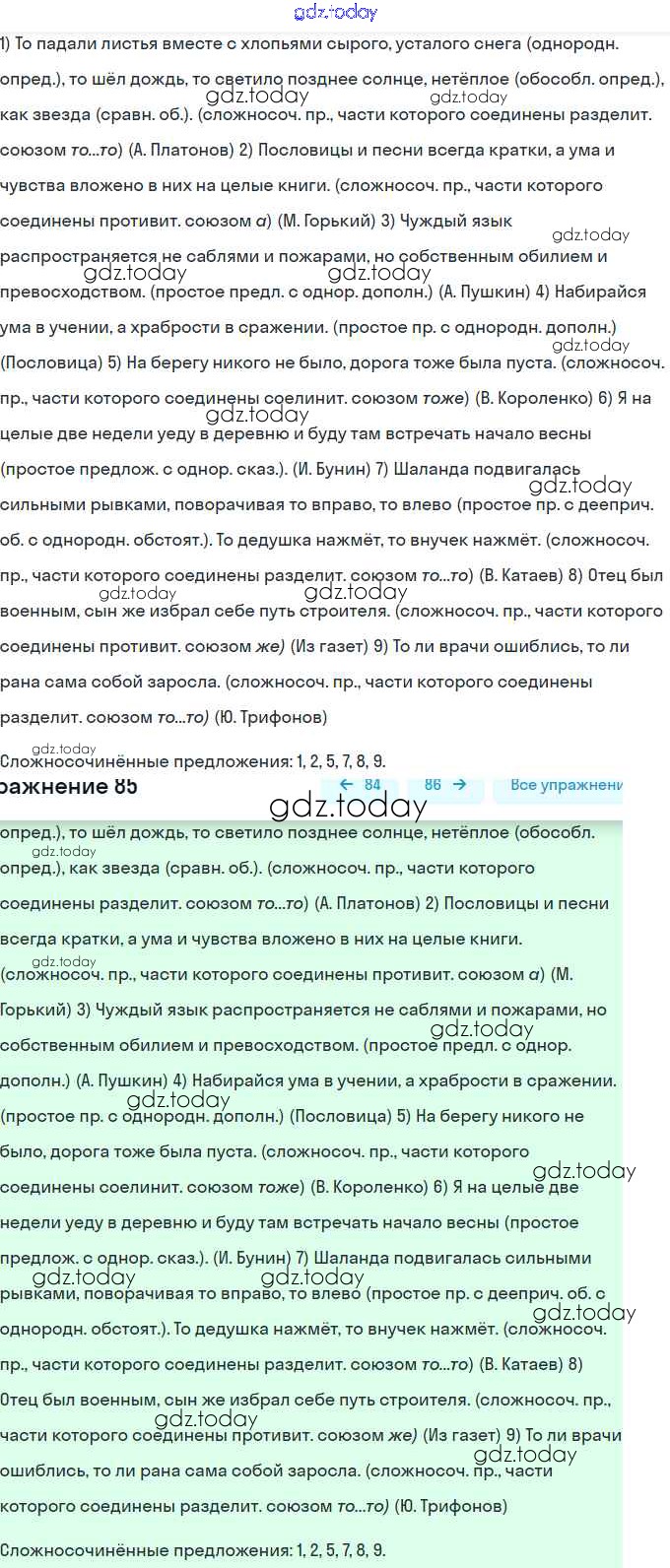На страницах сайта gdz.today вы найдете учебный и вспомогательный материал, направленный на улучшения знаний школьной программы. ГДЗ - онлайн мир знаний Решение. Упражнения 85 Практике по Русскому языку для 9 класса Пичугов, Еремеева Просвещение, Дрофа 2022, 2012
