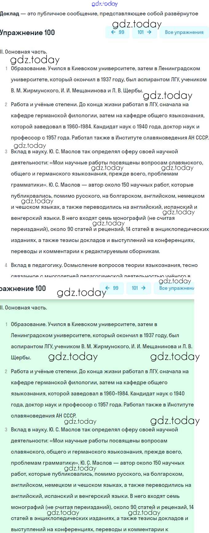 На страницах сайта gdz.today вы найдете учебный и вспомогательный материал, направленный на улучшения знаний школьной программы. ГДЗ - онлайн мир знаний Решение. Упражнения 100 Учебнику по Русскому языку для 9 класса Разумовская, Львова Дрофа, Просвещение Вертикаль 2018, 2021