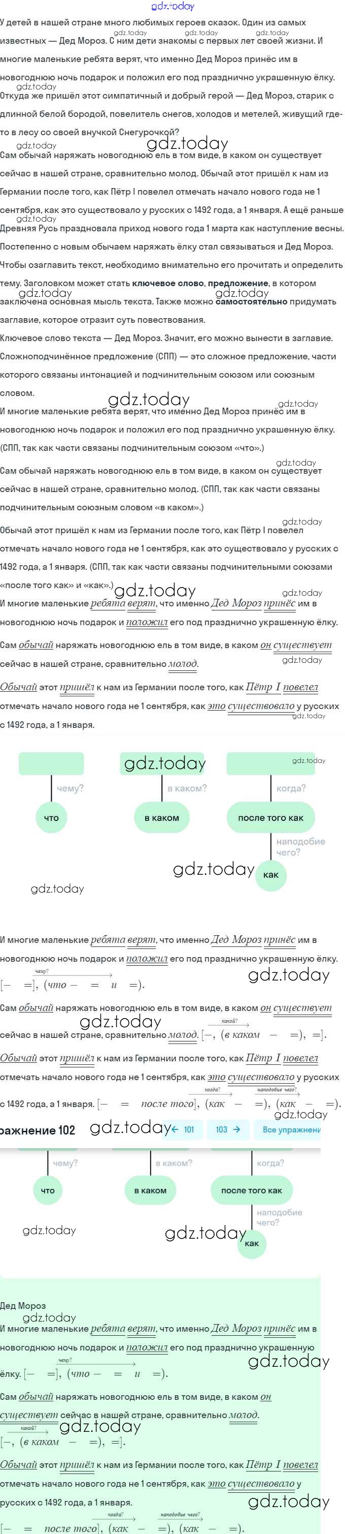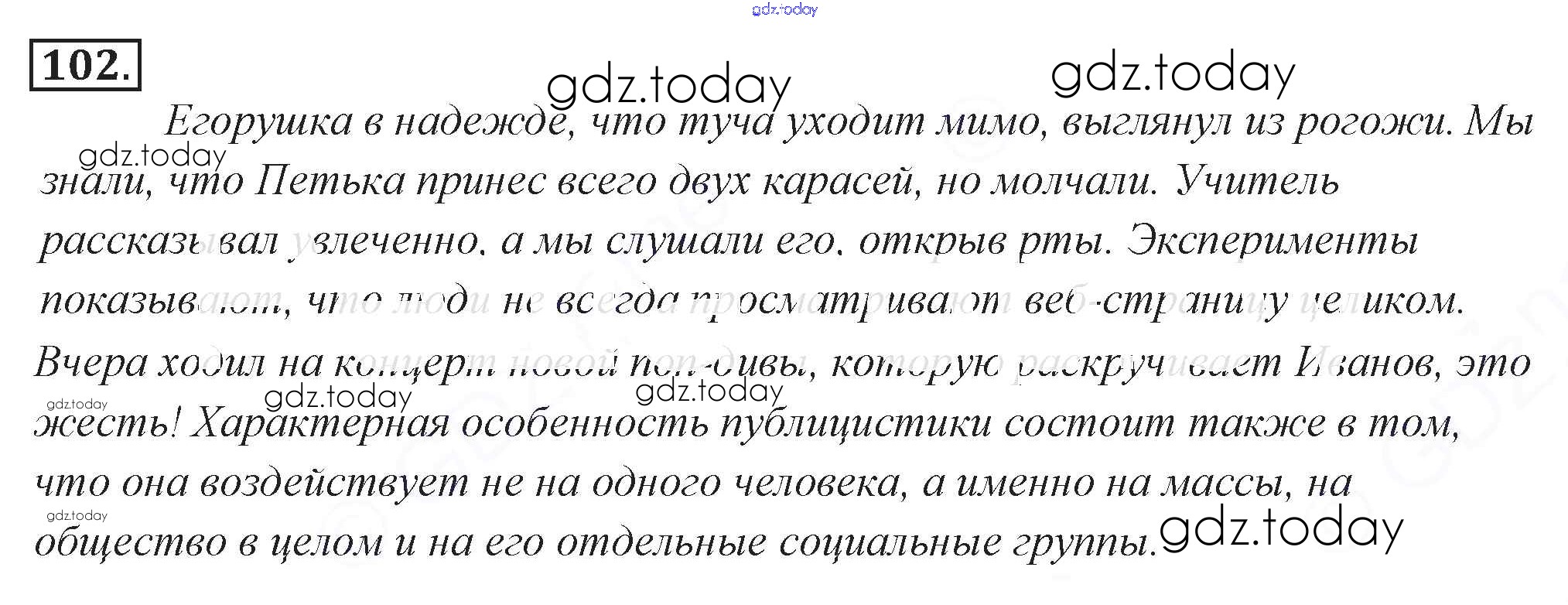 На страницах сайта gdz.today вы найдете учебный и вспомогательный материал, направленный на улучшения знаний школьной программы. ГДЗ - онлайн мир знаний Решение. Упражнения 102 Учебнику по Русскому языку для 9 класса Разумовская, Львова Дрофа, Просвещение Вертикаль 2018, 2021