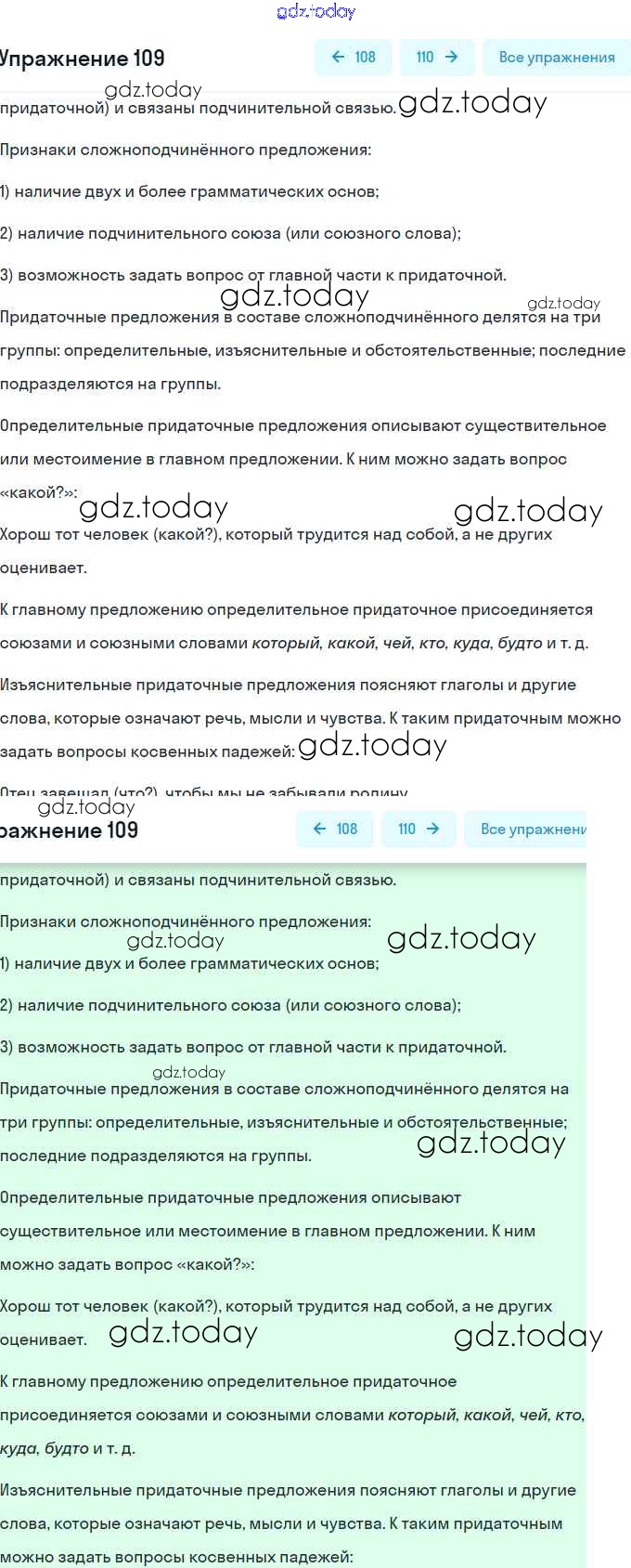 На страницах сайта gdz.today вы найдете учебный и вспомогательный материал, направленный на улучшения знаний школьной программы. ГДЗ - онлайн мир знаний Решение. Упражнения 109 Учебнику по Русскому языку для 9 класса Разумовская, Львова Дрофа, Просвещение Вертикаль 2018, 2021