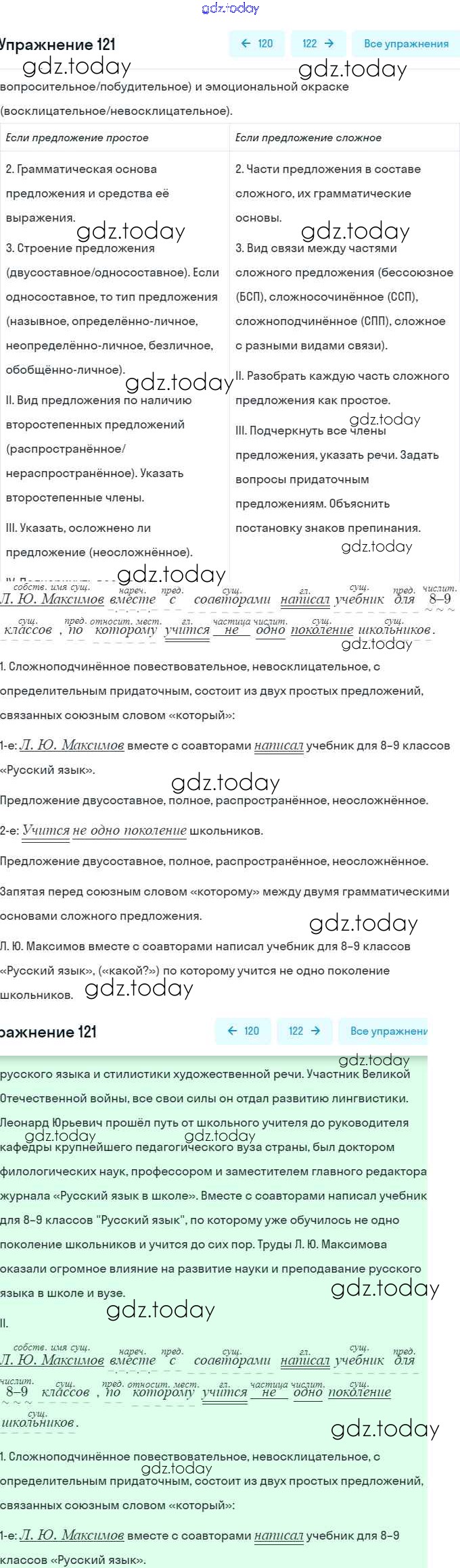 На страницах сайта gdz.today вы найдете учебный и вспомогательный материал, направленный на улучшения знаний школьной программы. ГДЗ - онлайн мир знаний Решение. Упражнения 121 Учебнику по Русскому языку для 9 класса Разумовская, Львова Дрофа, Просвещение Вертикаль 2018, 2021