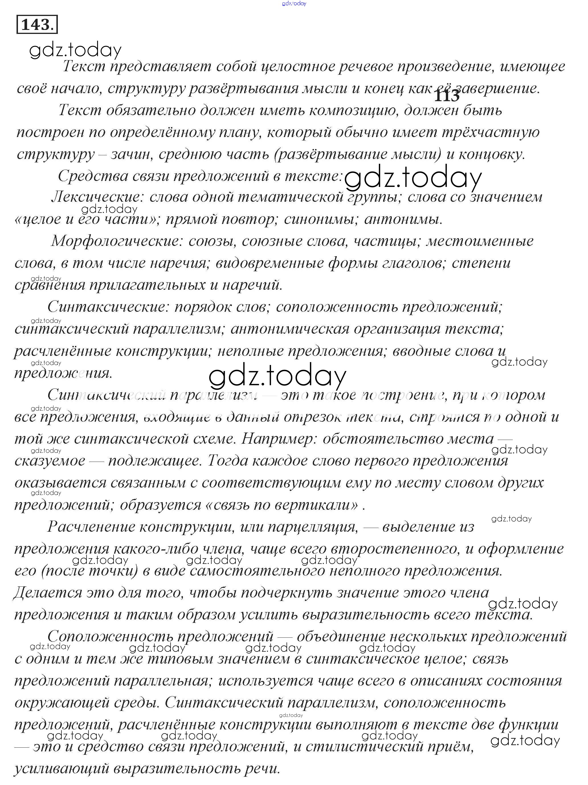 На страницах сайта gdz.today вы найдете учебный и вспомогательный материал, направленный на улучшения знаний школьной программы. ГДЗ - онлайн мир знаний Решение. Упражнения 143 Учебнику по Русскому языку для 9 класса Разумовская, Львова Дрофа, Просвещение Вертикаль 2018, 2021