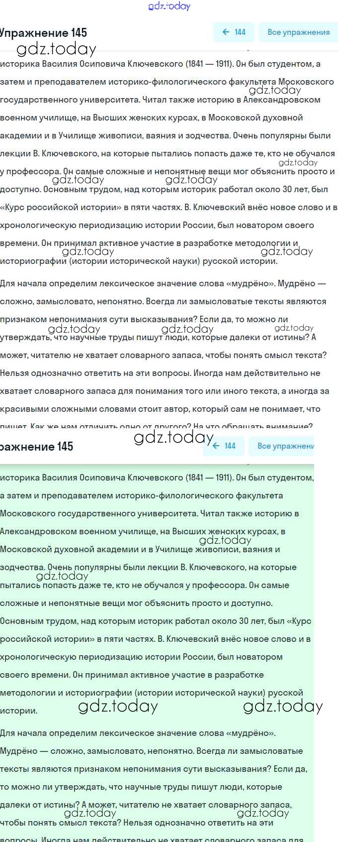 На страницах сайта gdz.today вы найдете учебный и вспомогательный материал, направленный на улучшения знаний школьной программы. ГДЗ - онлайн мир знаний Решение. Упражнения 145 Учебнику по Русскому языку для 9 класса Разумовская, Львова Дрофа, Просвещение Вертикаль 2018, 2021