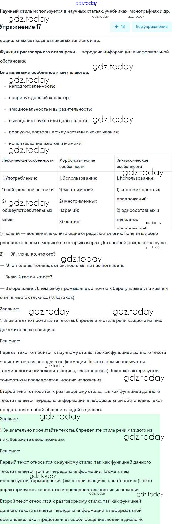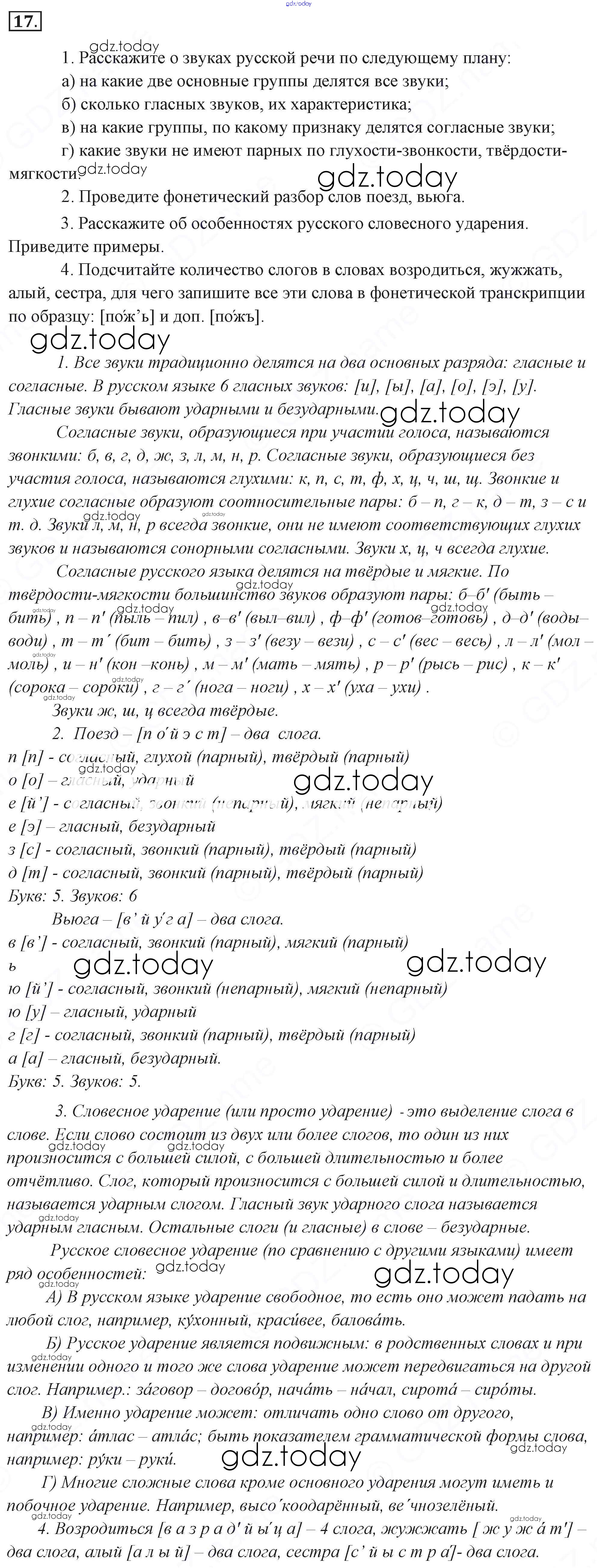 На страницах сайта gdz.today вы найдете учебный и вспомогательный материал, направленный на улучшения знаний школьной программы. ГДЗ - онлайн мир знаний Решение. Упражнения 17 Учебнику по Русскому языку для 9 класса Разумовская, Львова Дрофа, Просвещение Вертикаль 2018, 2021