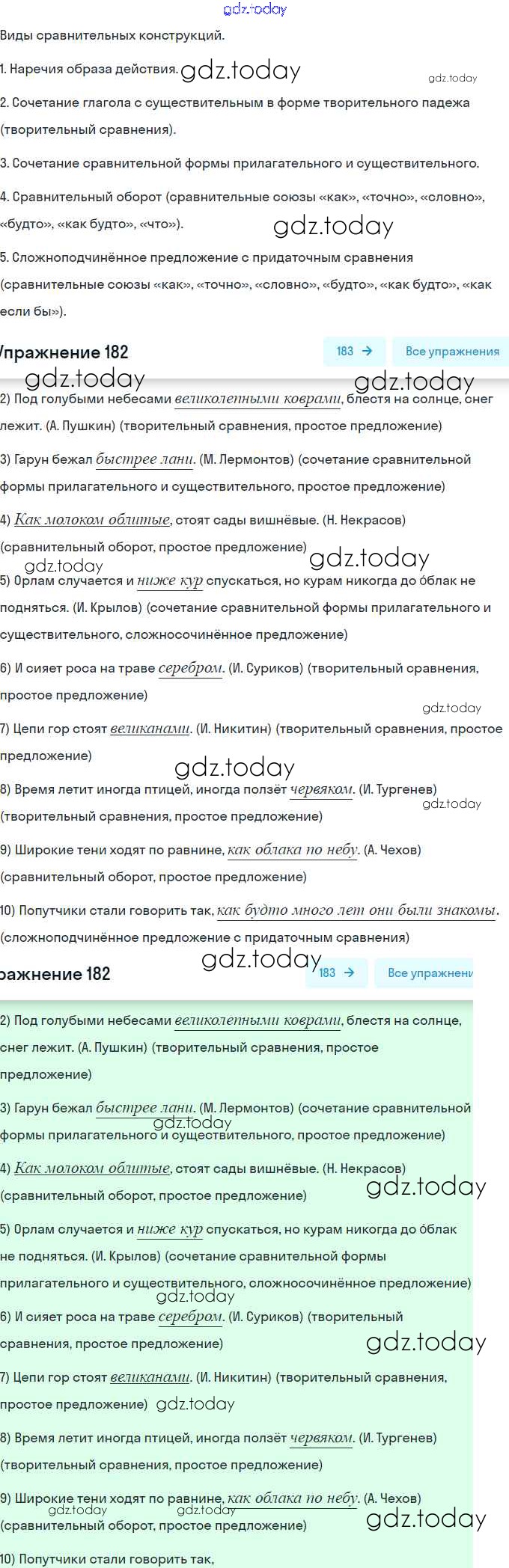 На страницах сайта gdz.today вы найдете учебный и вспомогательный материал, направленный на улучшения знаний школьной программы. ГДЗ - онлайн мир знаний Решение. Упражнения 182 Учебнику по Русскому языку для 9 класса Разумовская, Львова Дрофа, Просвещение Вертикаль 2018, 2021