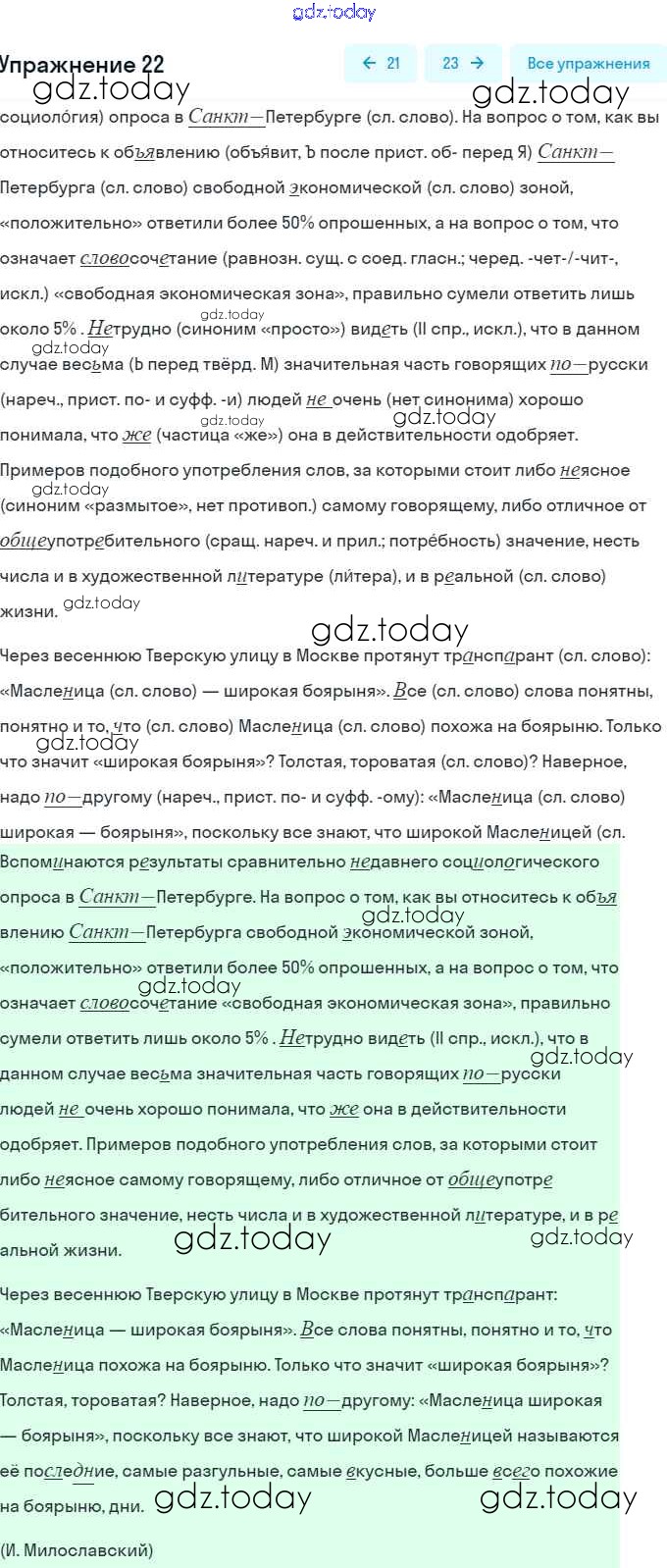 На страницах сайта gdz.today вы найдете учебный и вспомогательный материал, направленный на улучшения знаний школьной программы. ГДЗ - онлайн мир знаний Решение. Упражнения 22 Учебнику по Русскому языку для 9 класса Разумовская, Львова Дрофа, Просвещение Вертикаль 2018, 2021