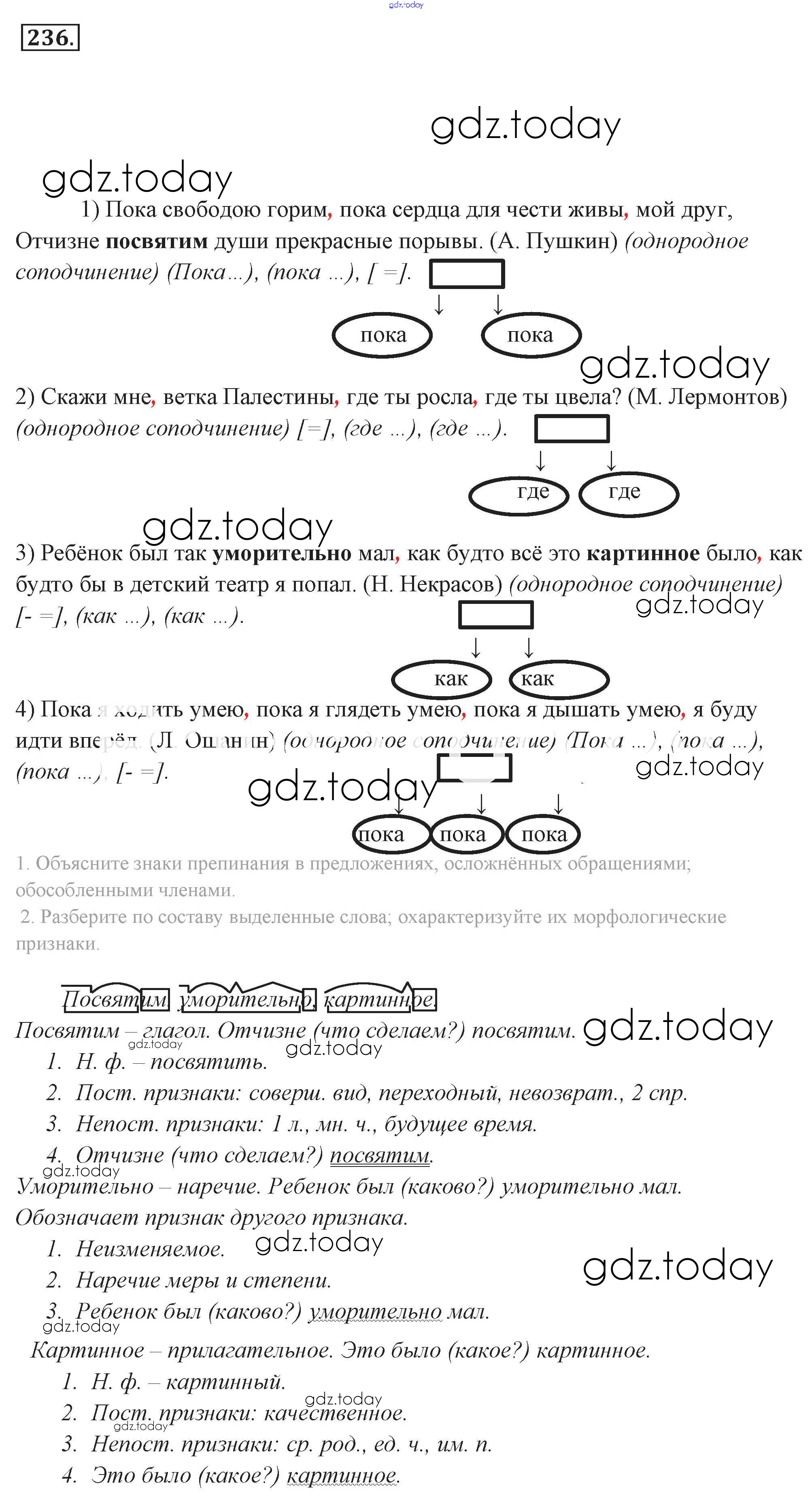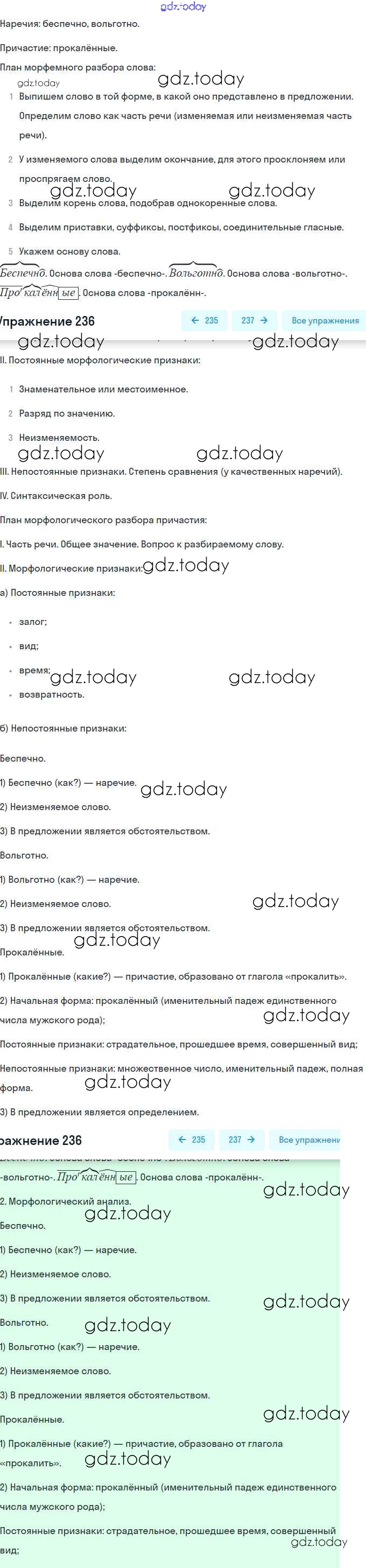 На страницах сайта gdz.today вы найдете учебный и вспомогательный материал, направленный на улучшения знаний школьной программы. ГДЗ - онлайн мир знаний Решение. Упражнения 236 Учебнику по Русскому языку для 9 класса Разумовская, Львова Дрофа, Просвещение Вертикаль 2018, 2021