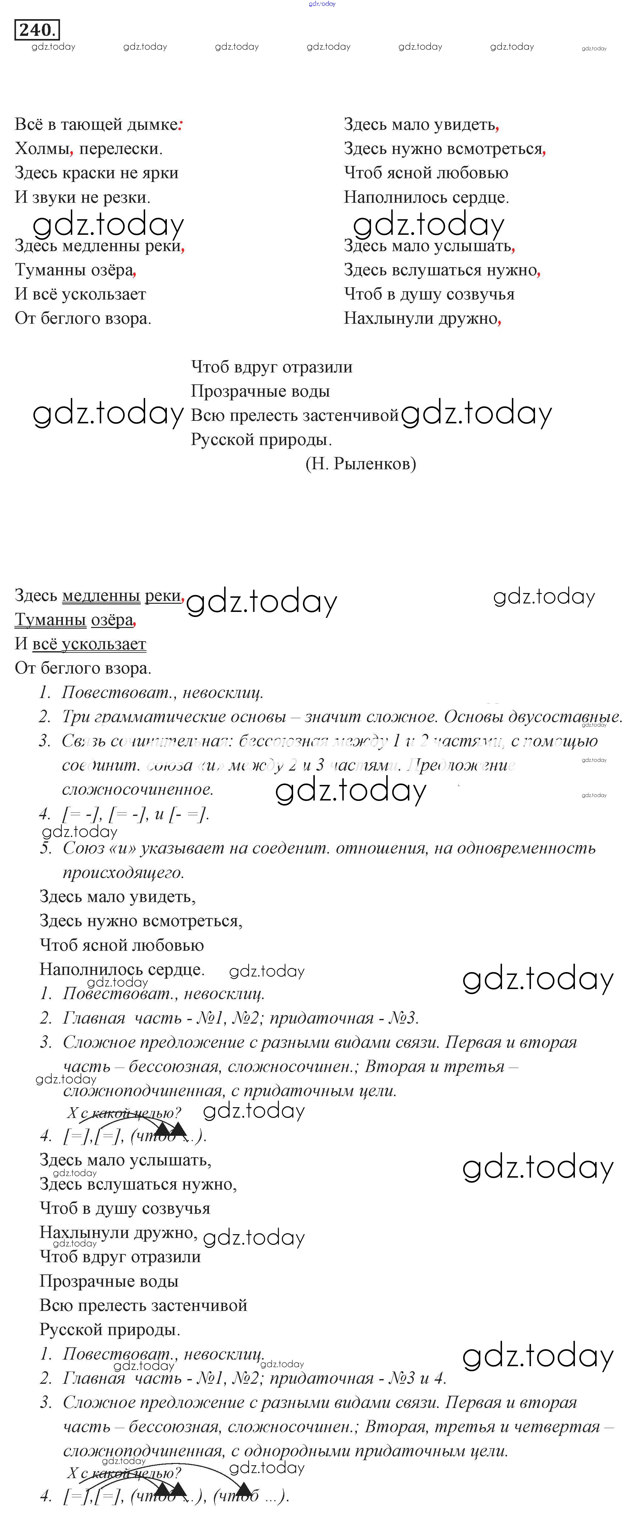 На страницах сайта gdz.today вы найдете учебный и вспомогательный материал, направленный на улучшения знаний школьной программы. ГДЗ - онлайн мир знаний Решение. Упражнения 240 Учебнику по Русскому языку для 9 класса Разумовская, Львова Дрофа, Просвещение Вертикаль 2018, 2021