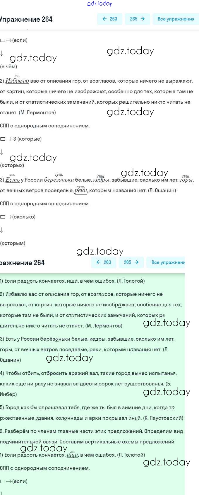 На страницах сайта gdz.today вы найдете учебный и вспомогательный материал, направленный на улучшения знаний школьной программы. ГДЗ - онлайн мир знаний Решение. Упражнения 264 Учебнику по Русскому языку для 9 класса Разумовская, Львова Дрофа, Просвещение Вертикаль 2018, 2021