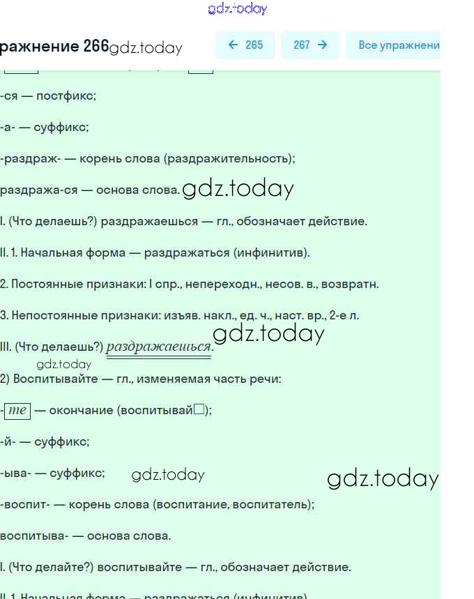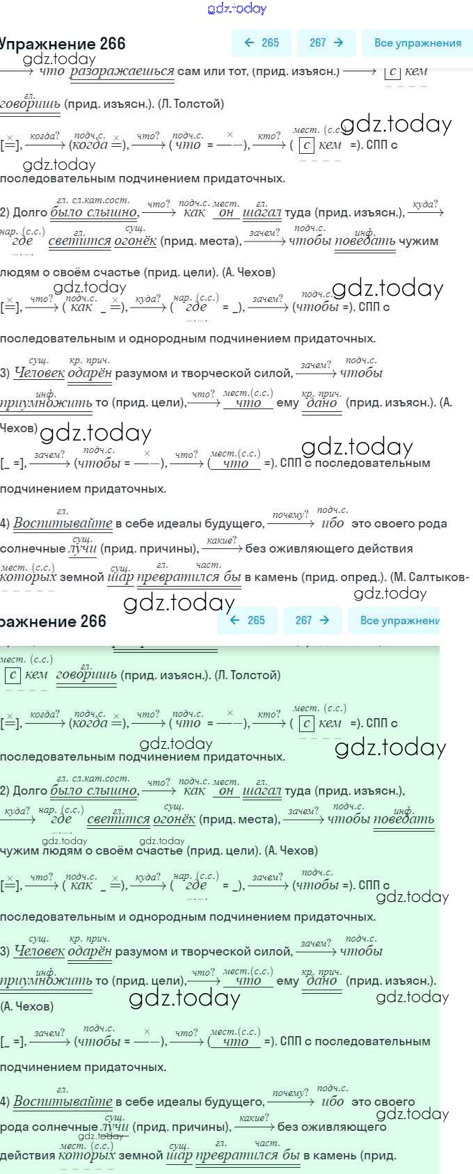 На страницах сайта gdz.today вы найдете учебный и вспомогательный материал, направленный на улучшения знаний школьной программы. ГДЗ - онлайн мир знаний Решение. Упражнения 266 Учебнику по Русскому языку для 9 класса Разумовская, Львова Дрофа, Просвещение Вертикаль 2018, 2021
