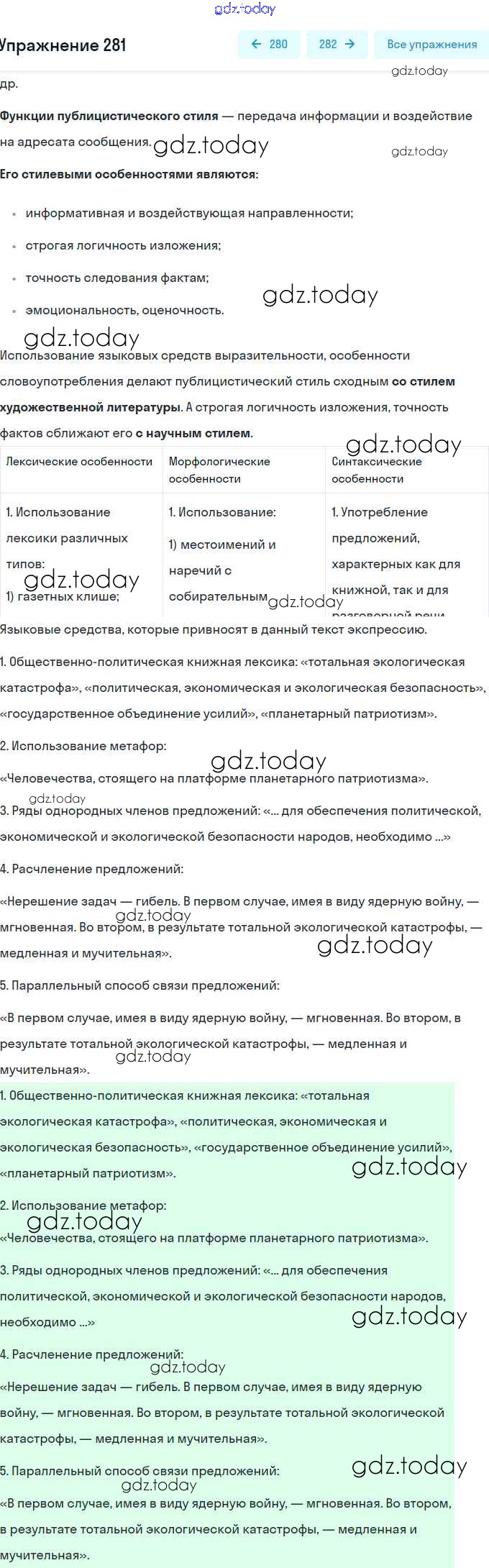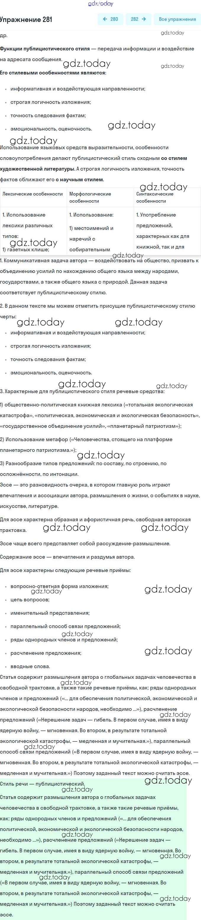 На страницах сайта gdz.today вы найдете учебный и вспомогательный материал, направленный на улучшения знаний школьной программы. ГДЗ - онлайн мир знаний Решение. Упражнения 281 Учебнику по Русскому языку для 9 класса Разумовская, Львова Дрофа, Просвещение Вертикаль 2018, 2021