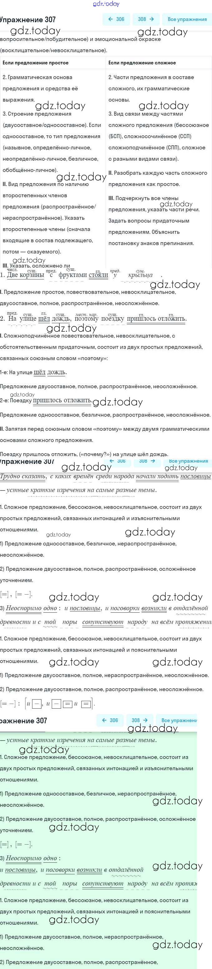 Ответы к Решение. Упражнения 307 Учебнику по Русскому языку для 9 класса Разумовская, Львова Дрофа, Просвещение Вертикаль 2018, 2021