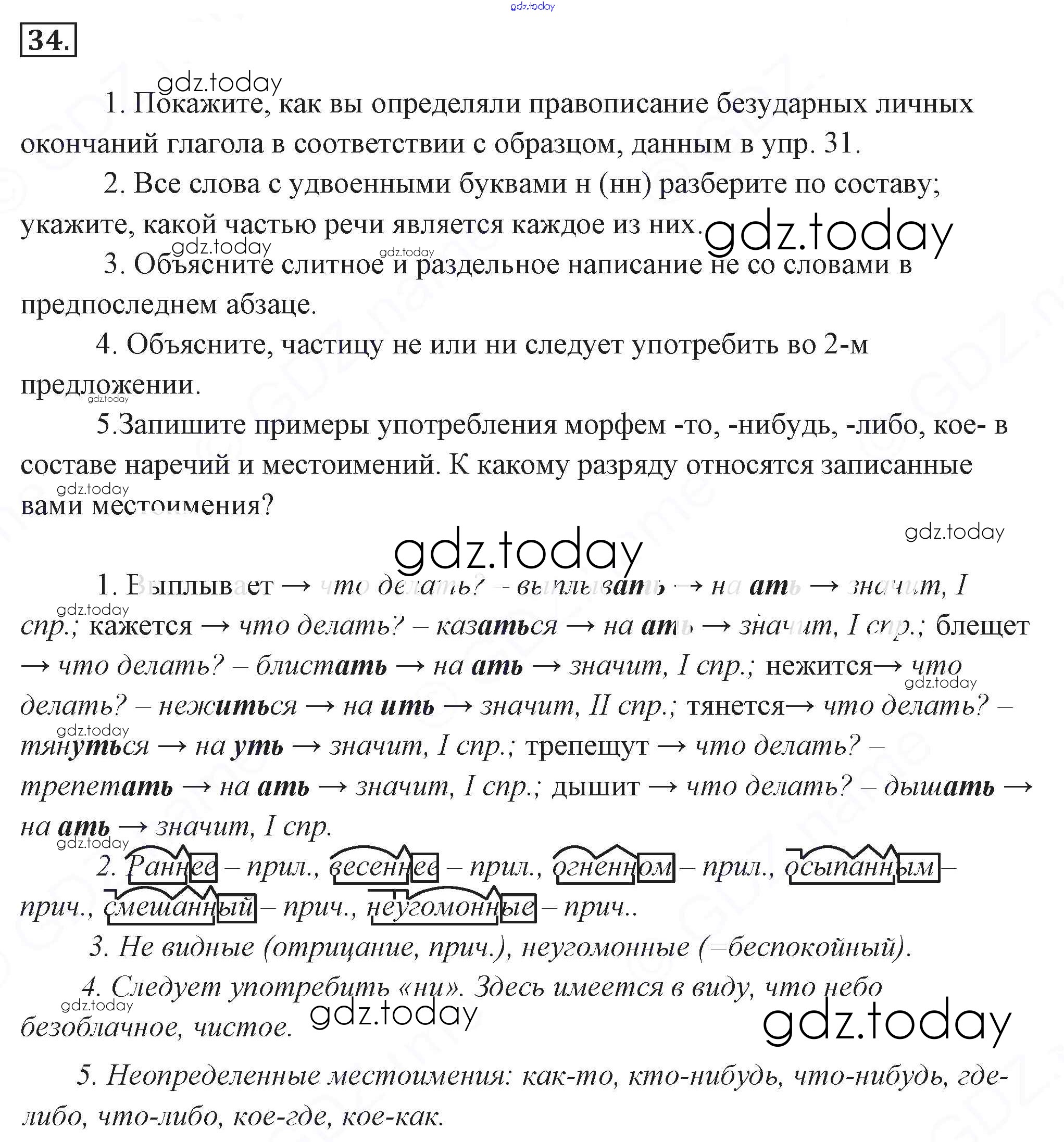 Ответы к Решение. Упражнения 34 Учебнику по Русскому языку для 9 класса Разумовская, Львова Дрофа, Просвещение Вертикаль 2018, 2021