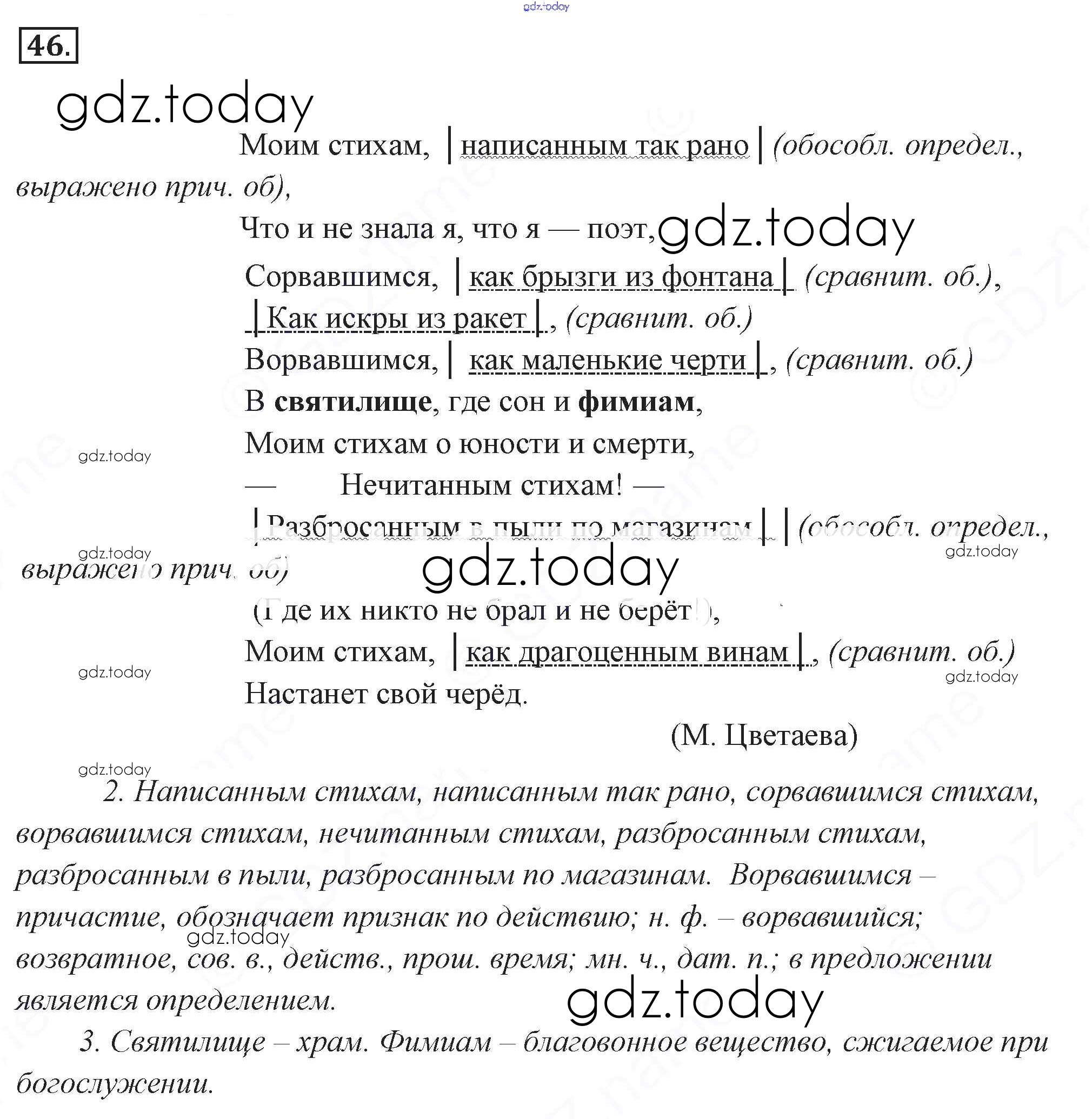 На страницах сайта gdz.today вы найдете учебный и вспомогательный материал, направленный на улучшения знаний школьной программы. ГДЗ - онлайн мир знаний Решение. Упражнения 46 Учебнику по Русскому языку для 9 класса Разумовская, Львова Дрофа, Просвещение Вертикаль 2018, 2021